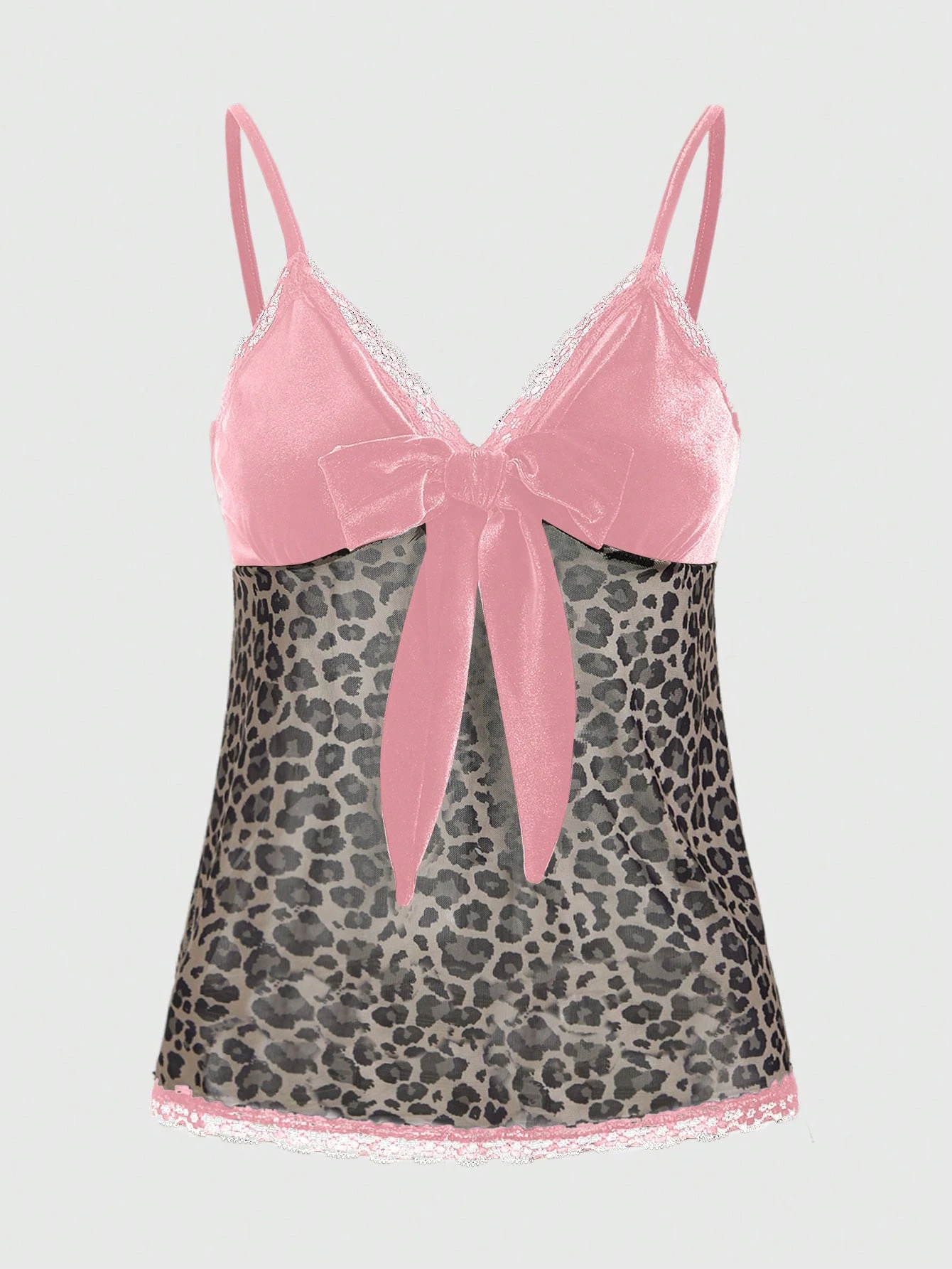 J-Fashion Fashionable Leopard Patchwork Tie-Knot Cami Top, Summer