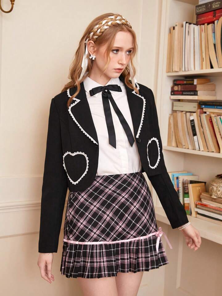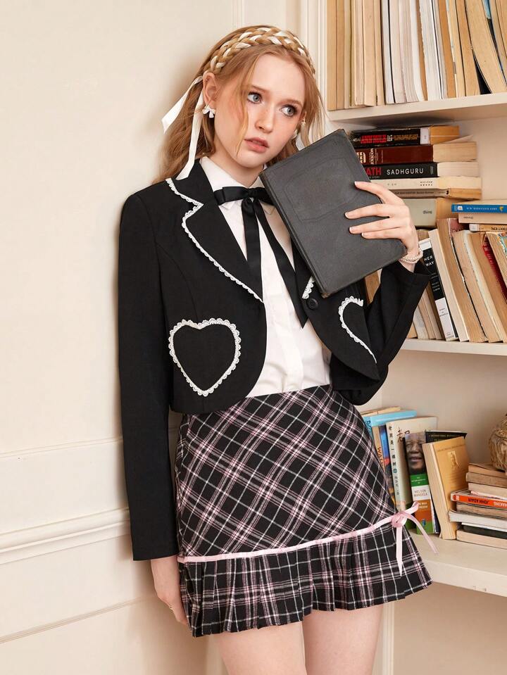 J-Fashion Heart Pocket Crop Blazer