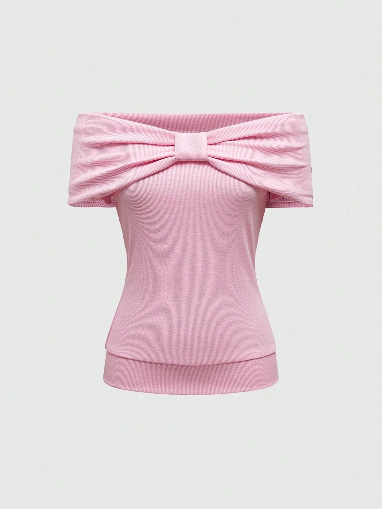 J-Fashion Hime Gyaru Kawaii Bowknot Off Shoulder Sweet Cute Women T-Shirt, Summer
