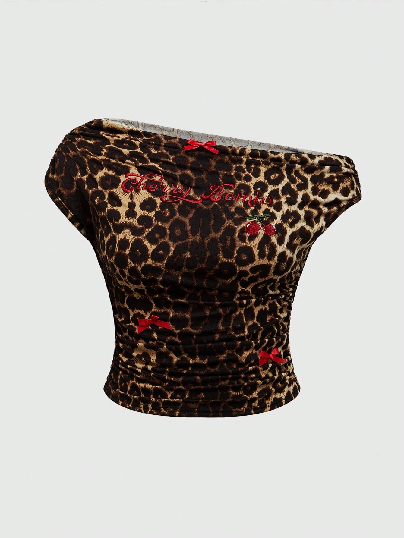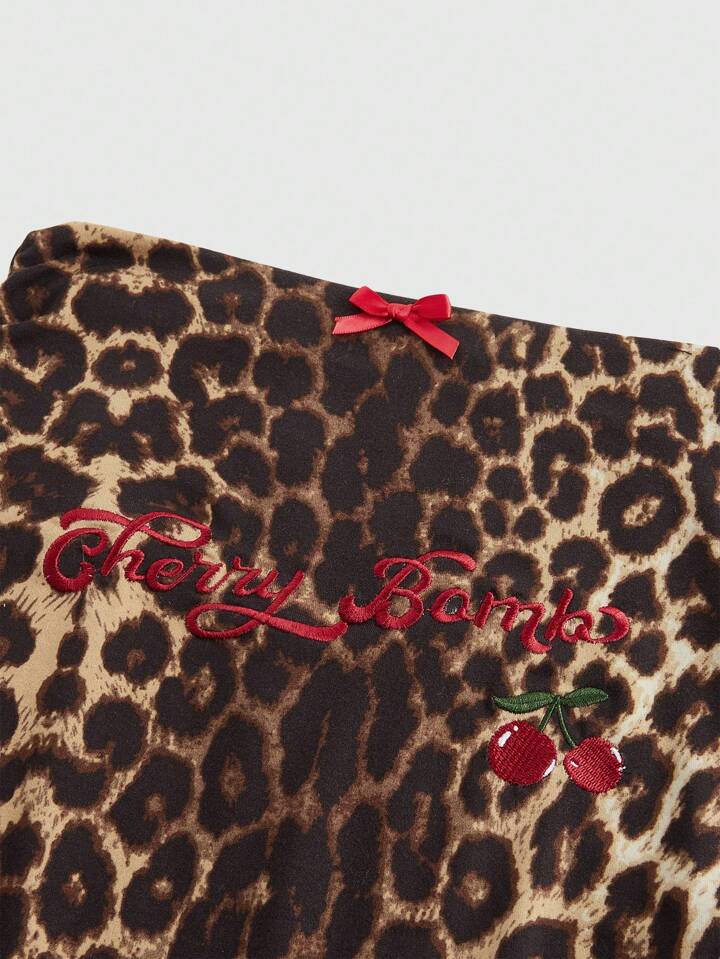 J-Fashion Plus Size Cherry Leopard Print "Cherry Bomb" Embroidery T-Shirt