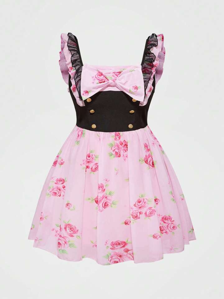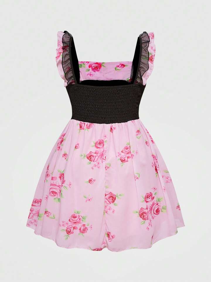 J-Fashion Plus Size Elegant Contrast Color Floral Print Summer Dress