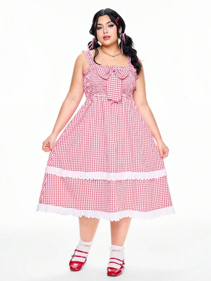 J-Fashion Plus Size Women Plaid Patchwork Ruffle Sleeveless Dress, Vacation Outfits