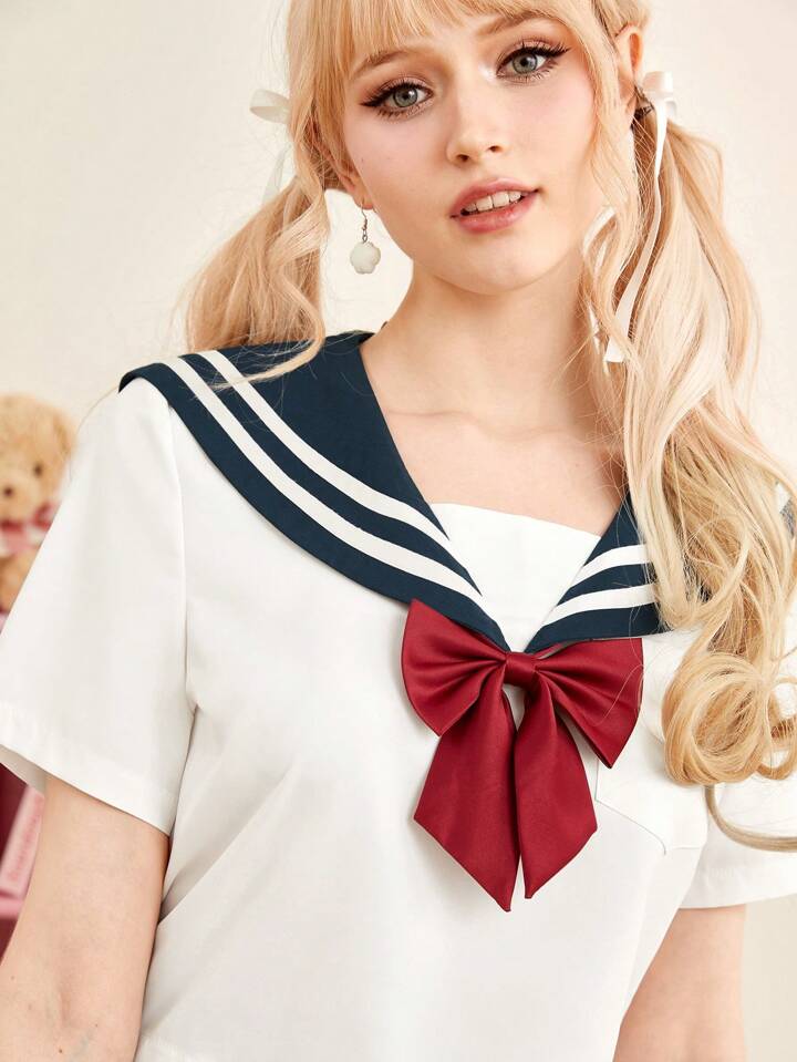 J-Fashion Sailor Collar Blouse & Pleated Skirt, School