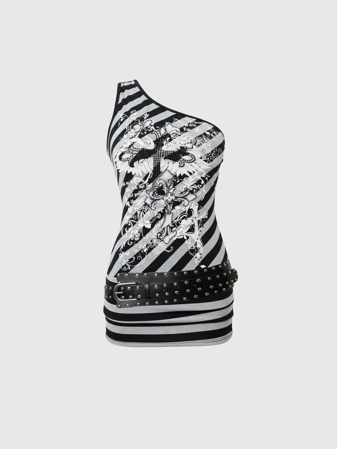 J-Fashion Sexy Off-Shoulder Striped Patchwork Punk Style Top
