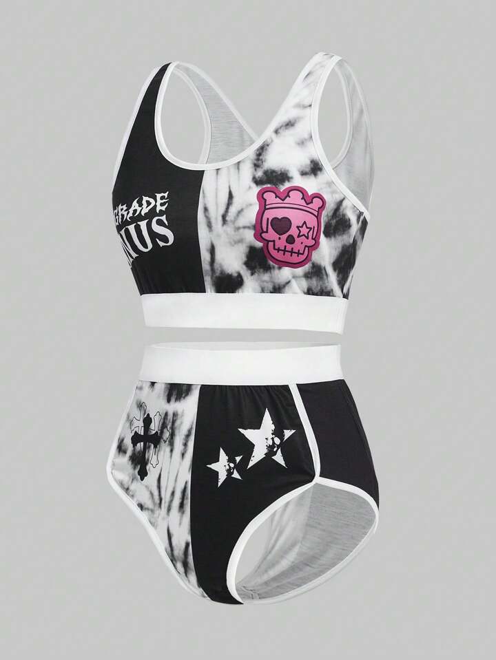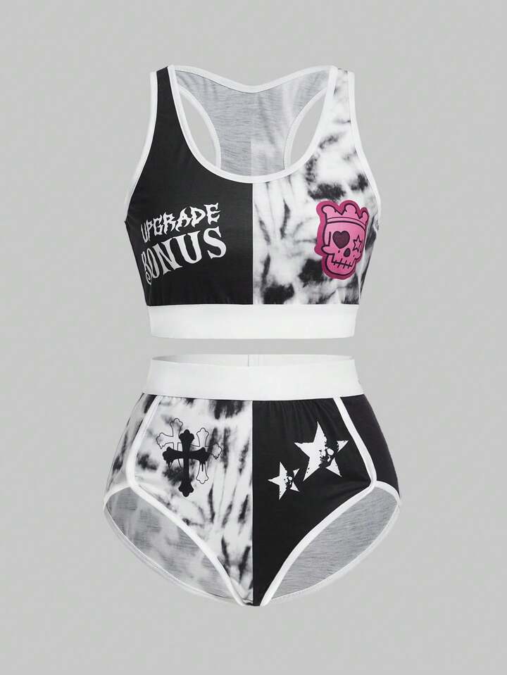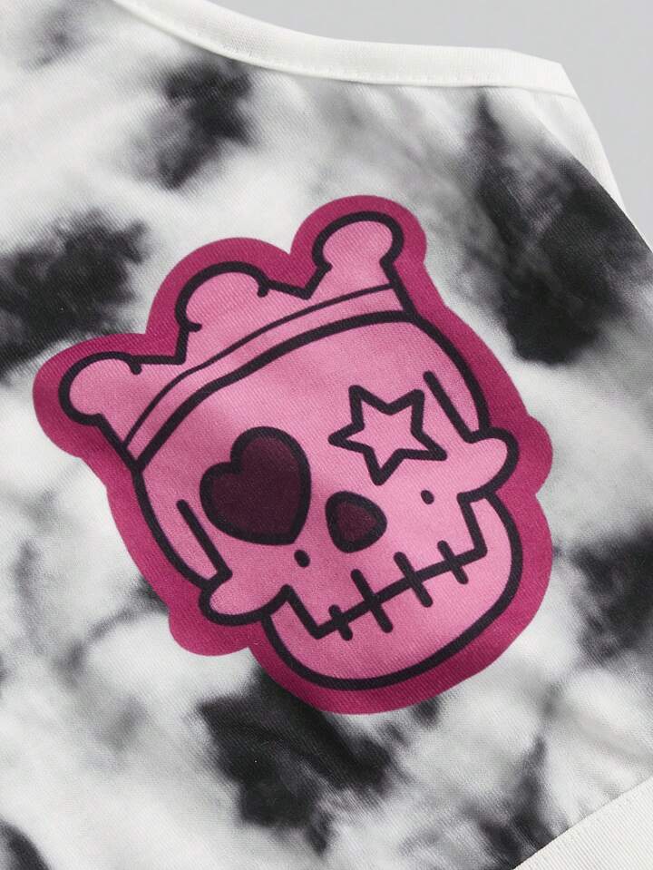 J-Fashion Tie-Dye Color Block Fun & Funny Skeleton & Cross Print Ladies' Pajama Set