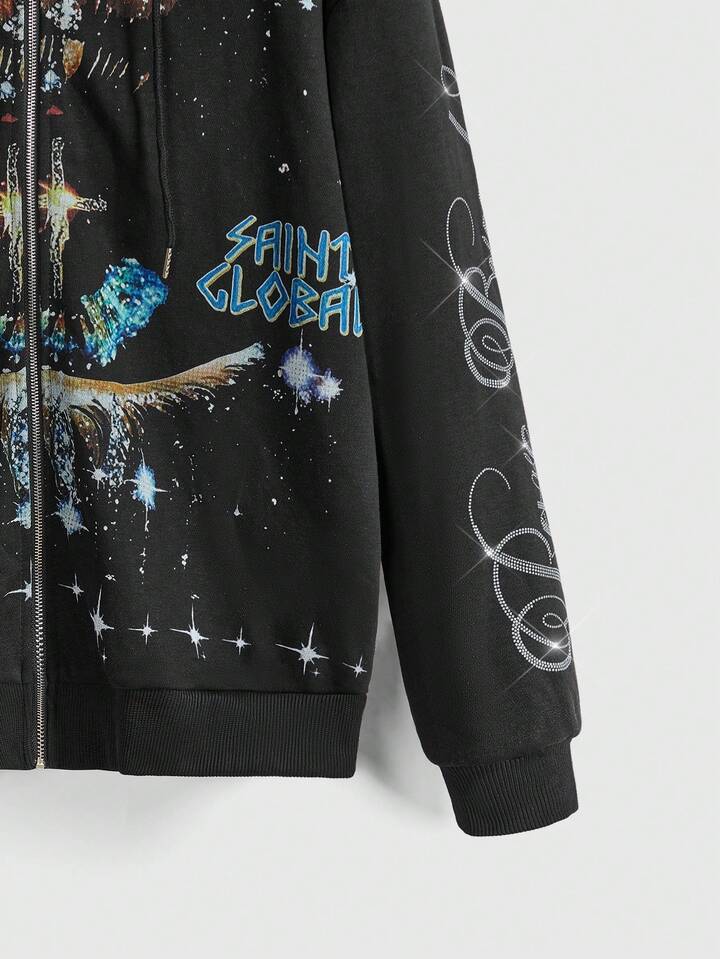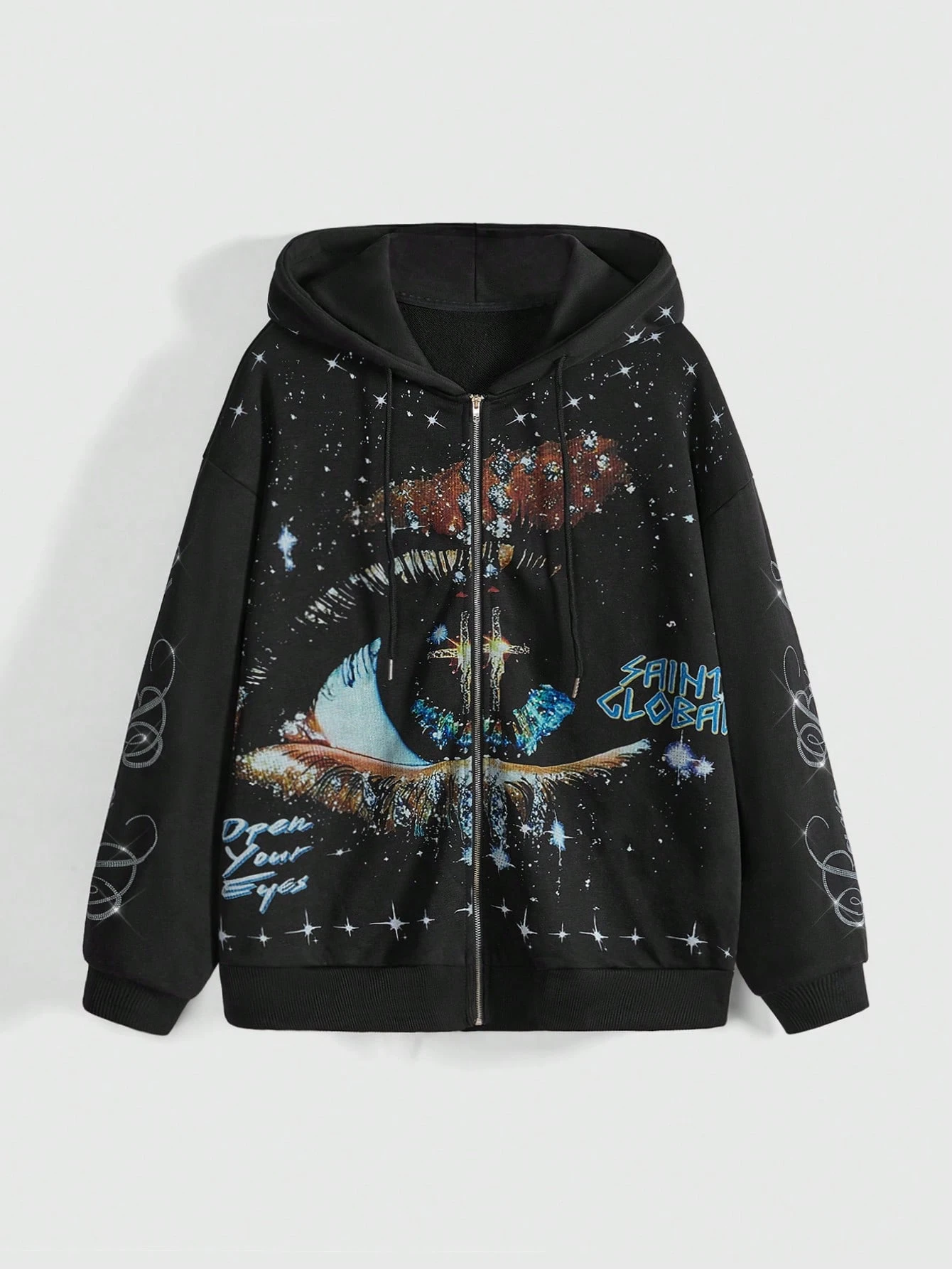 J-Fashion Unisex Retro Baddie Street Style Starry Sky Print Casual Sweatshirt, Versatile For Women & Men