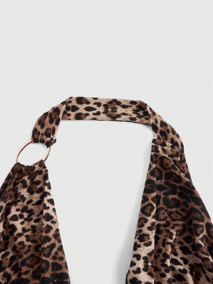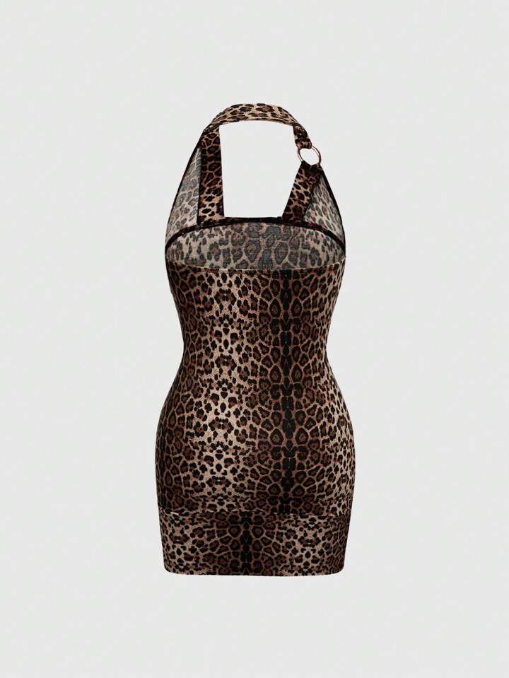 J-Fashion Vintage Draped Neck Sexy Leopard Print Halter Dress For Women