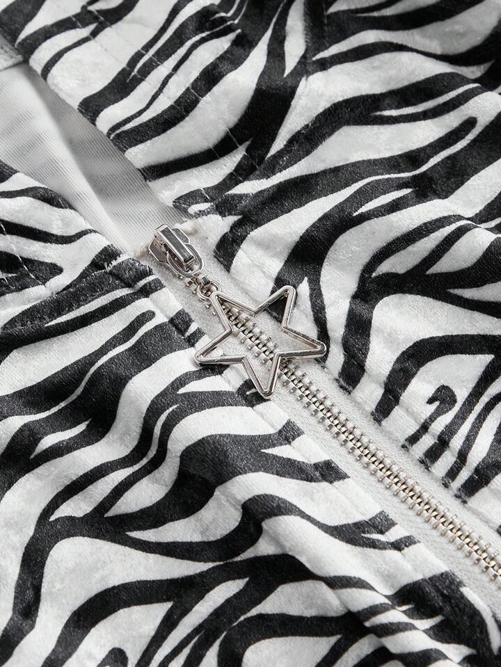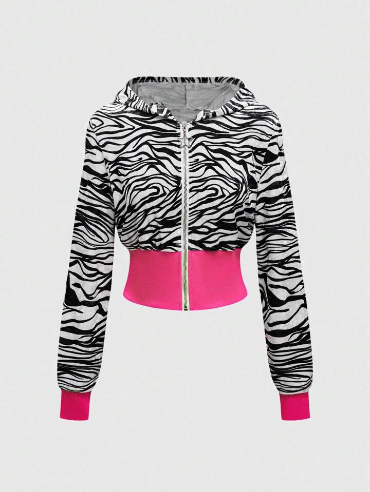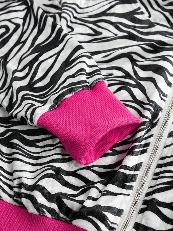 J-Fashion Vintage Women Studded Zebra & Leopard Color Block Hoodie Sweatshirt