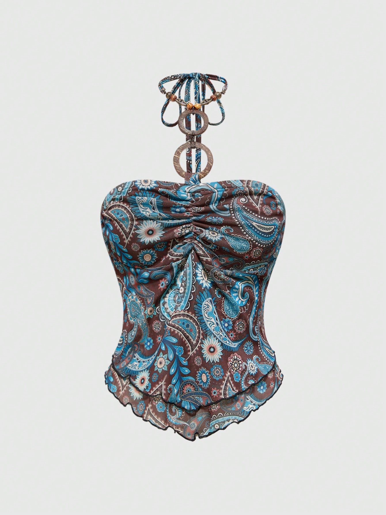 J-Fashion Western Wear Hippie Style Vintage Cashew Flower Pattern Strapless Cami Top For Women
