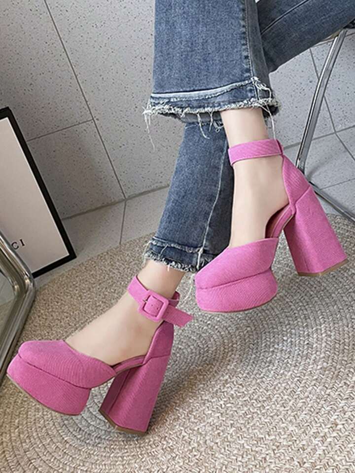 J-Fashion Women Solid Platform Chunky Heeled Ankle Strap Pumps, Elegant Outdoor Pumps