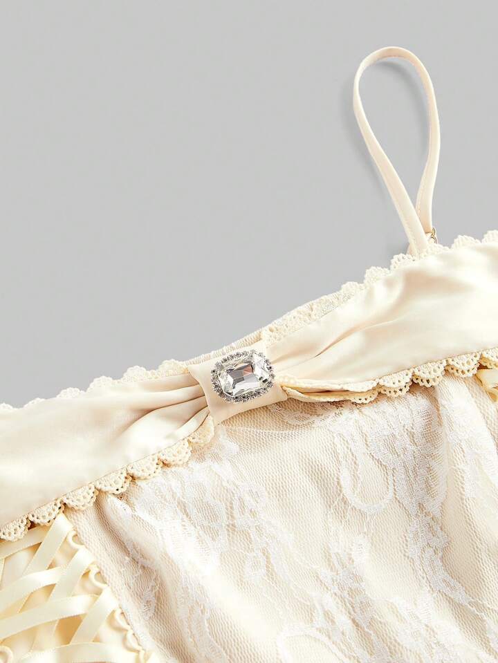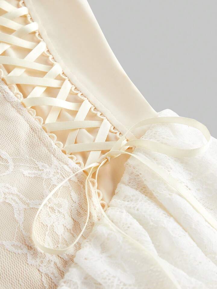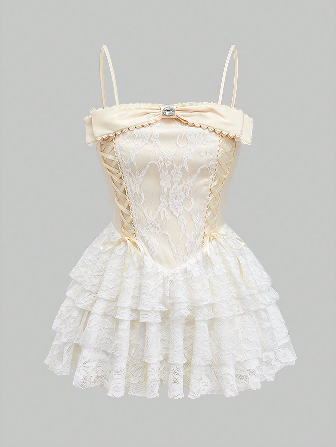 J-Fashion Women's Elegant Lace Up Lace Patchwork Camisole Mini Dress