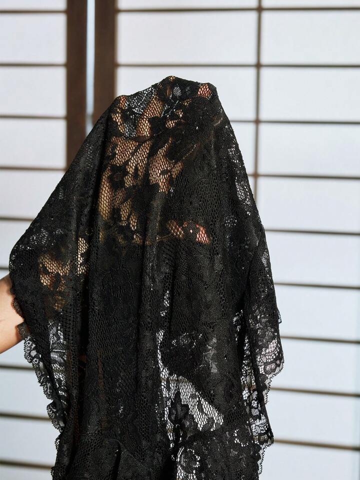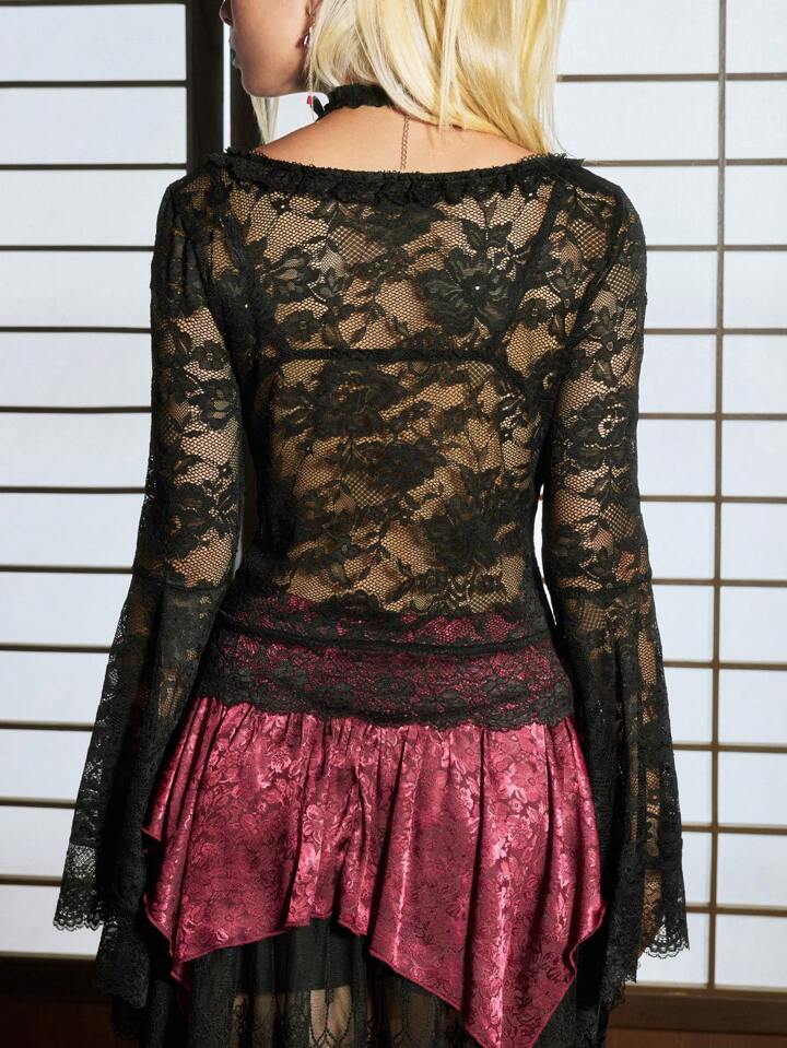 J-Fashion Women's Sheer Lace Bell Sleeve Metal Button Embellished T-Shirt