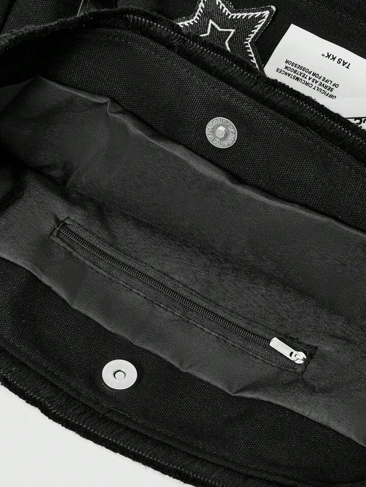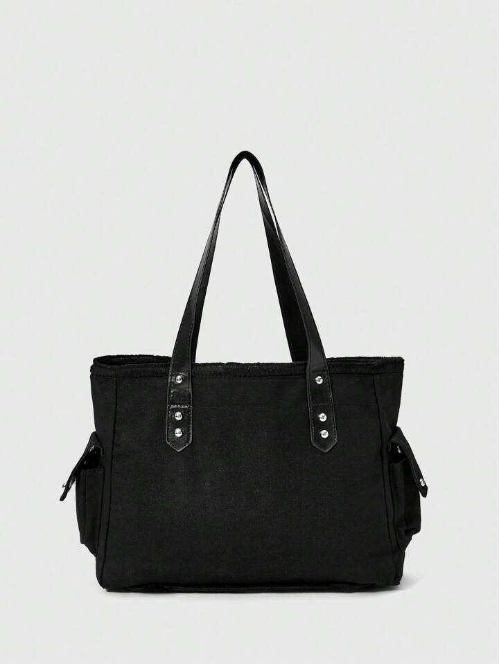 J-Fashion Women's Vintage Street Style Canvas Tote Bag, Y2K Chic Five-Pointed Star Decoration Handheld Shoulder Bag, Large Capacity Casual Fringed Canvas Bag, Black Bag