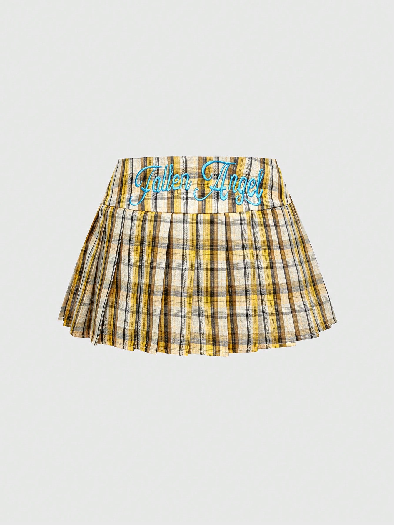 J-Fashion Women's Y2K Retro Shibuya Girl School Plaid Letter Embroidery Mini Skirt