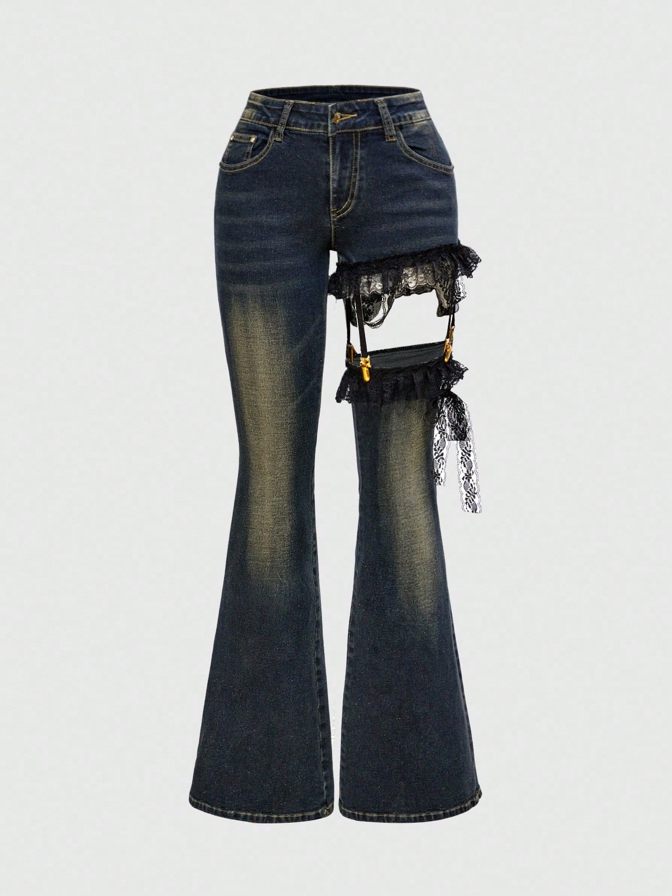 J-Fashion Y2K Gyaru Harajuku Plus Size Lace Patchwork Cross Super Low Waist Skinny Jeans