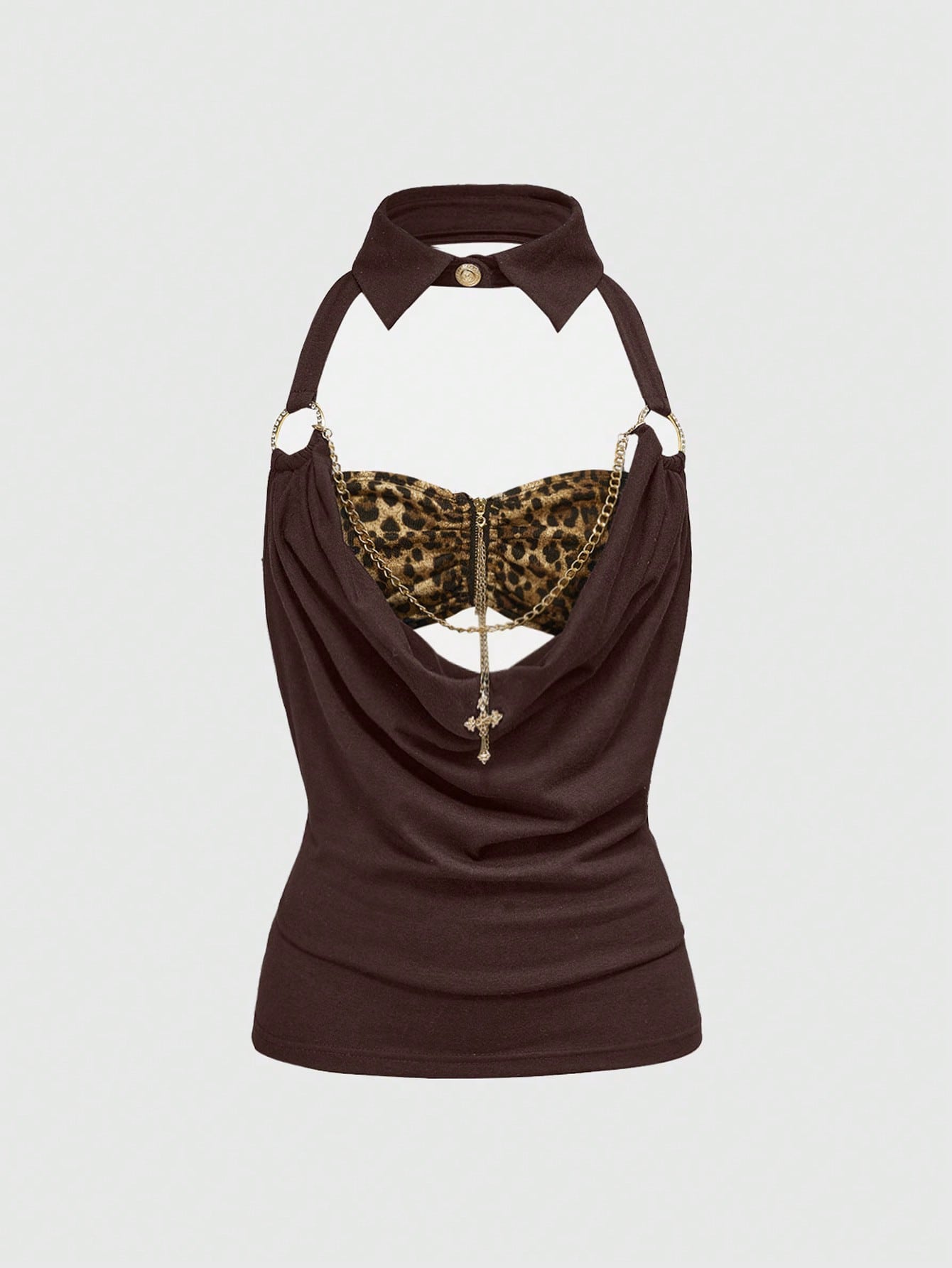 J-Fashion Y2K Harajuku Babe Vintage Animal & Leopard Print Splice Low Neck Sleeveless Women Top