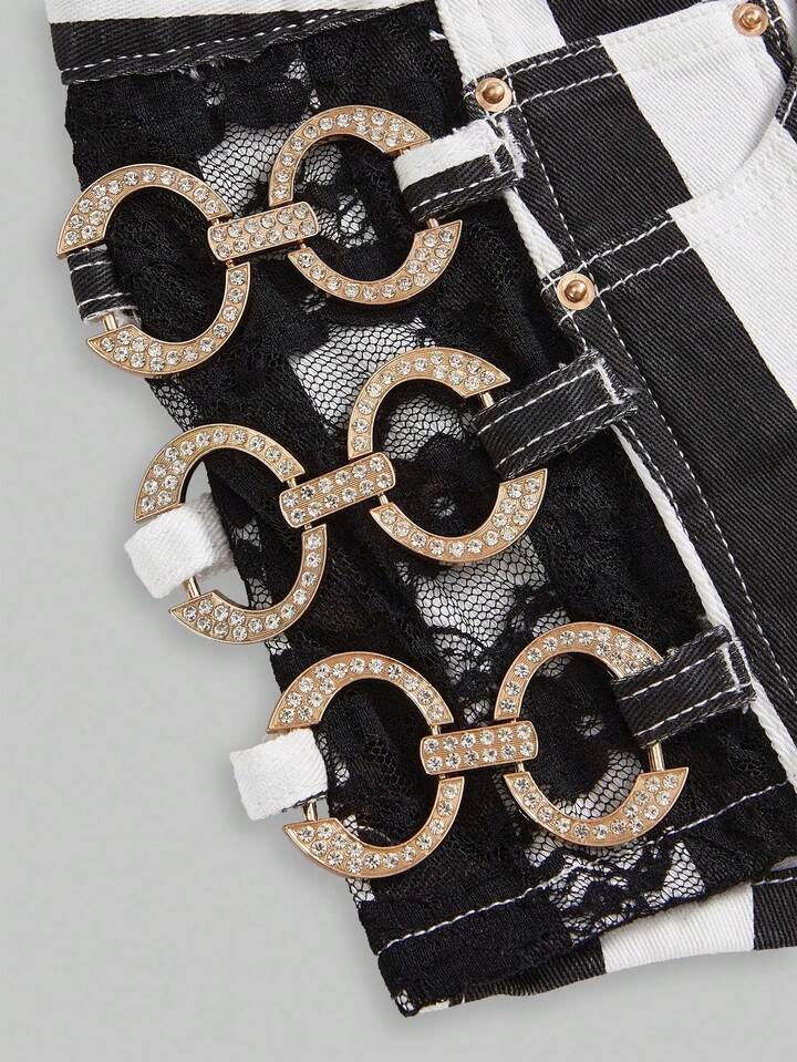 J-Fashion Y2K Harajuku Gyaru Millennium Sexy Lace Patchwork Low Waist Cross Retro Skinny Ultra Low Waist Women Jeans