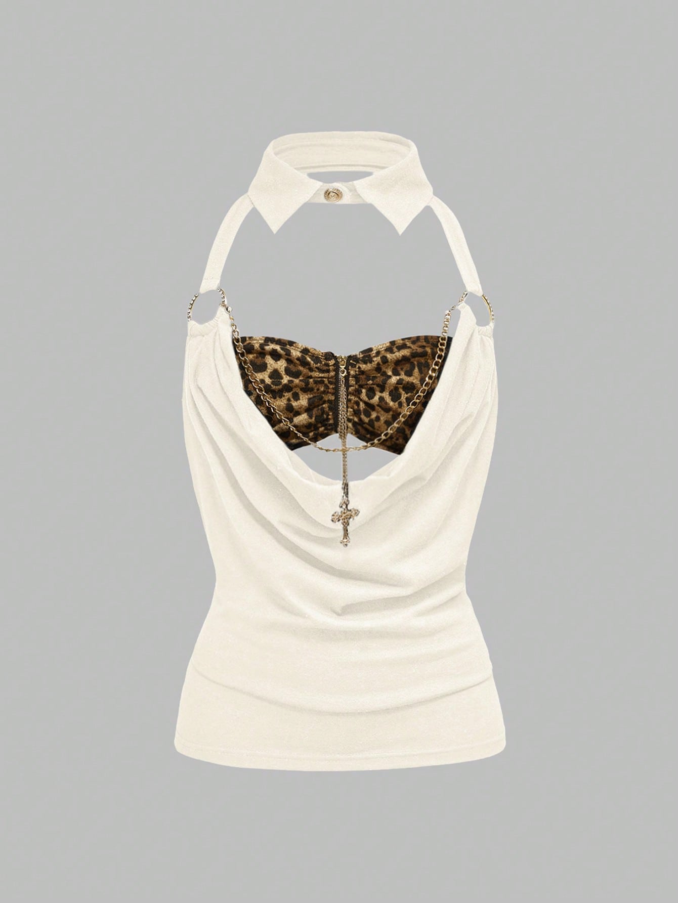 J-Fashion Y2K Harajuku Leopard Print Patchwork Sweetheart Neck 2 In 1 Women Tank Top