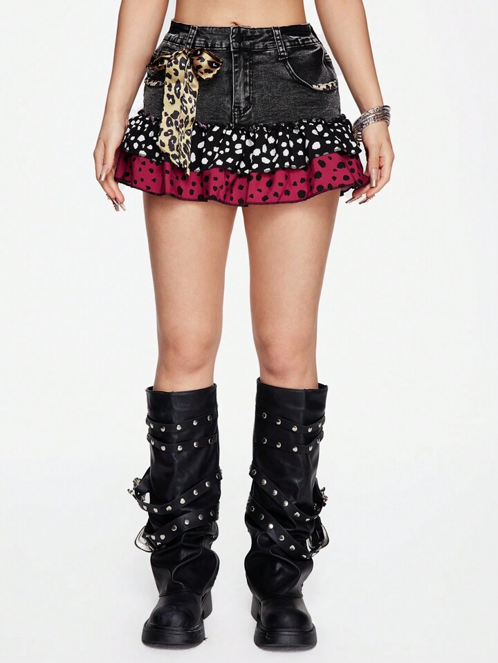 J-Fashion Y2K Harajuku Polka Dot Patchwork Denim A-Line Mini Skirt