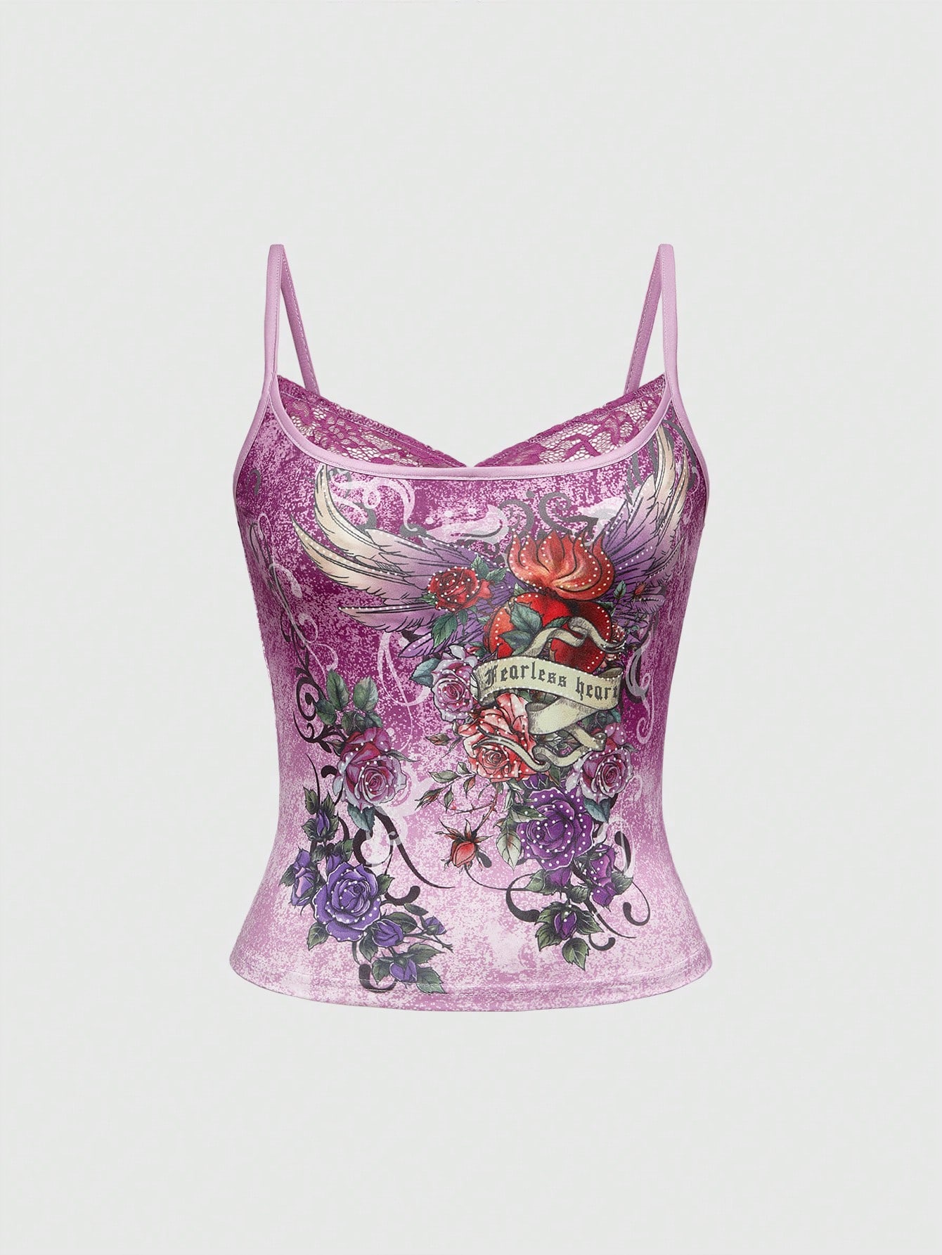 J-Fashion Y2K Harajuku Style Colorblock Wing & Rose Patch 2 In 1 Top