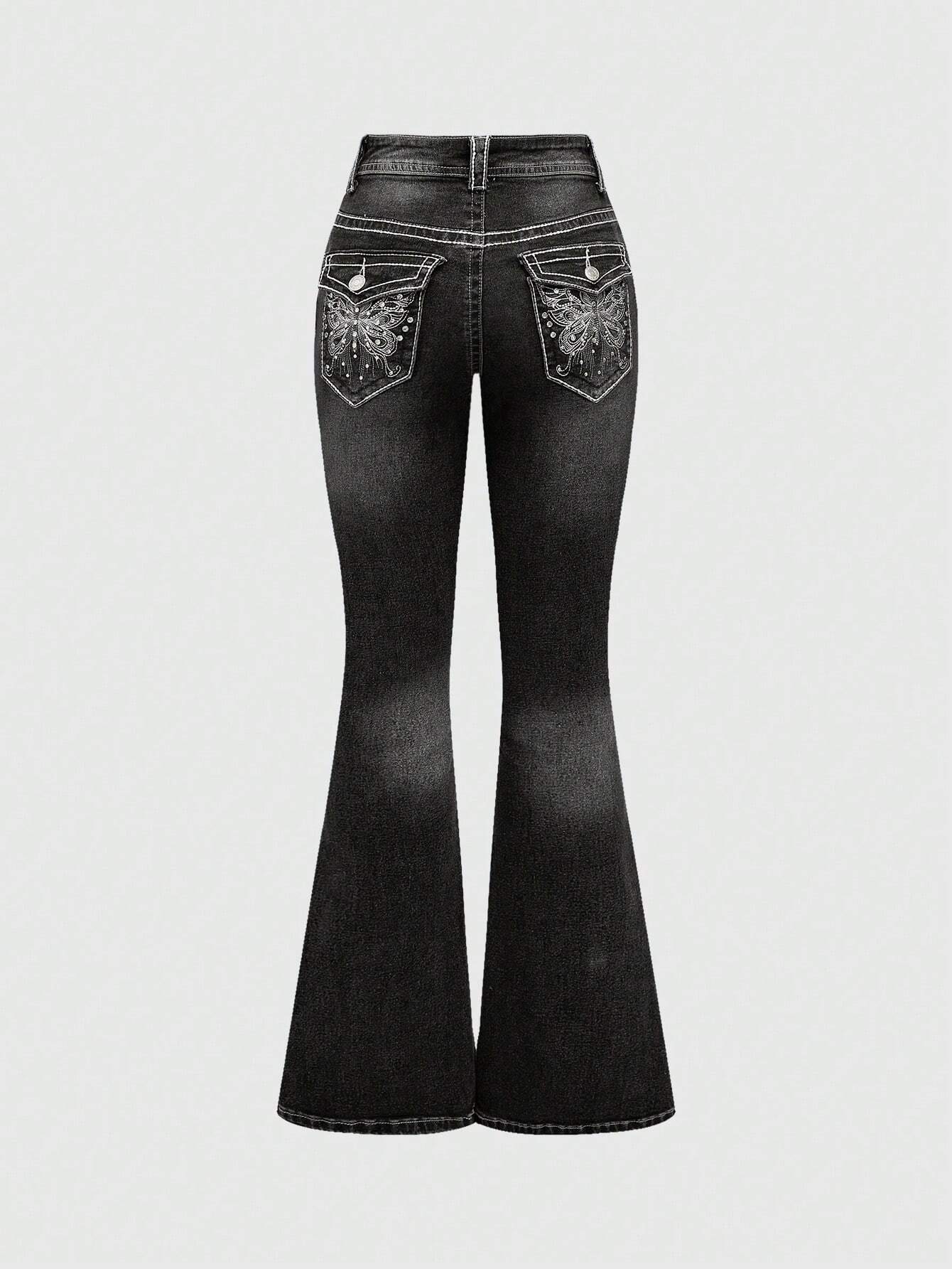 J-Fashion Y2K Low-Rise Vintage Rhinestone Butterfly Embroidered Jeans