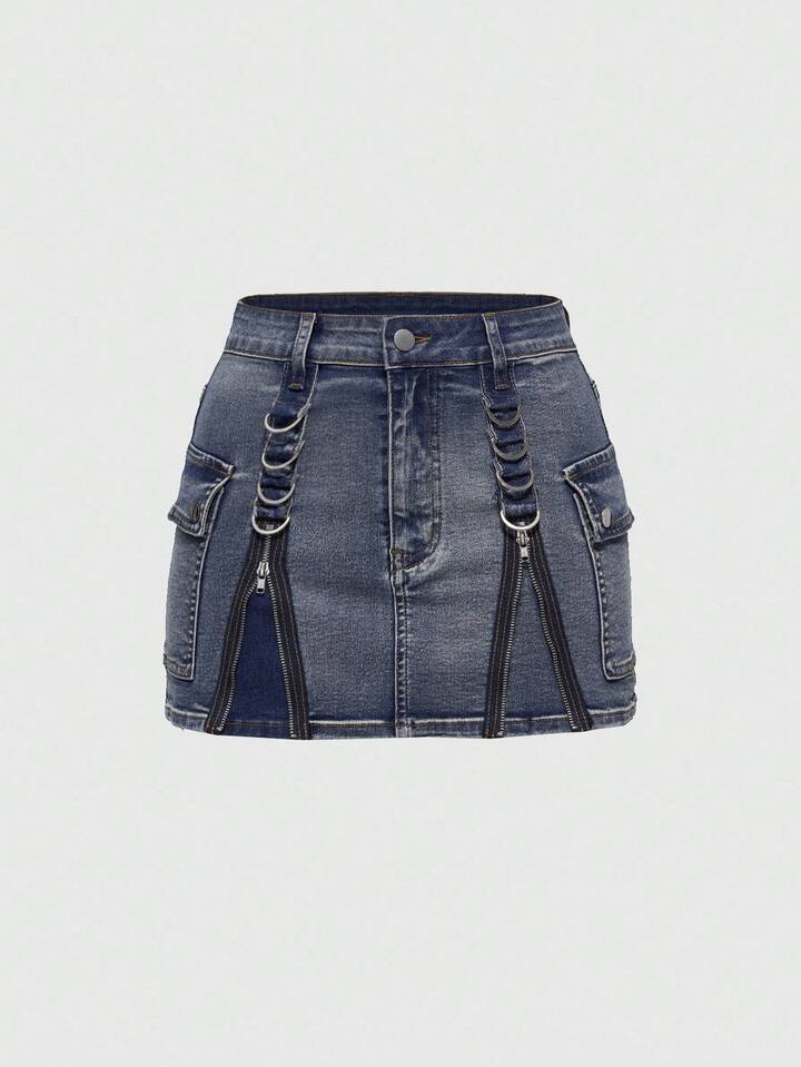 J-Fashion Y2K Rhinestone Embellished Denim Mini Skirt