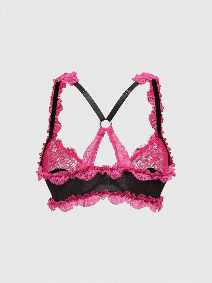 J-Fashion Y2K Style Sexy Contrast Color Lace Patchwork Front Hook Underwire Lingerie Bra