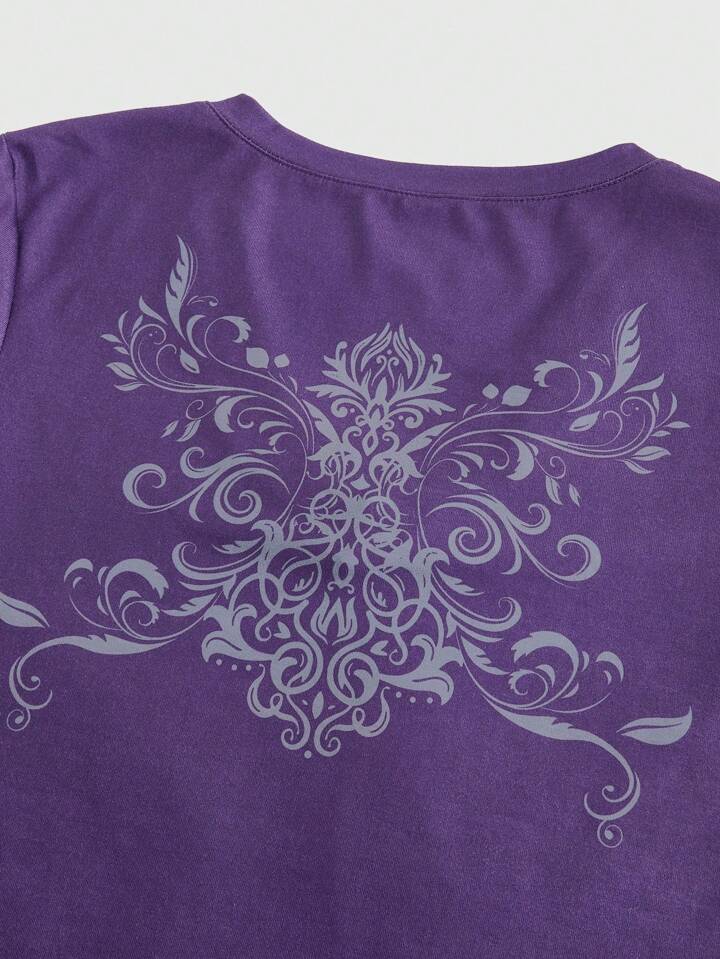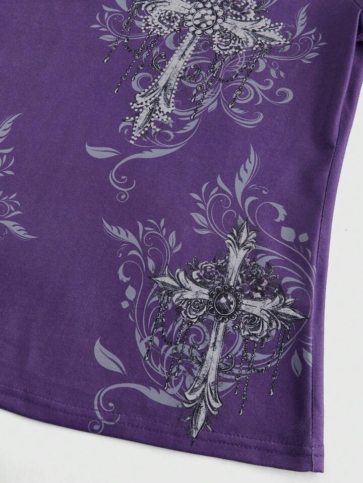 J-Fashion Y2K Subculture Harajuku Cross Print Purple T-Shirt For Women