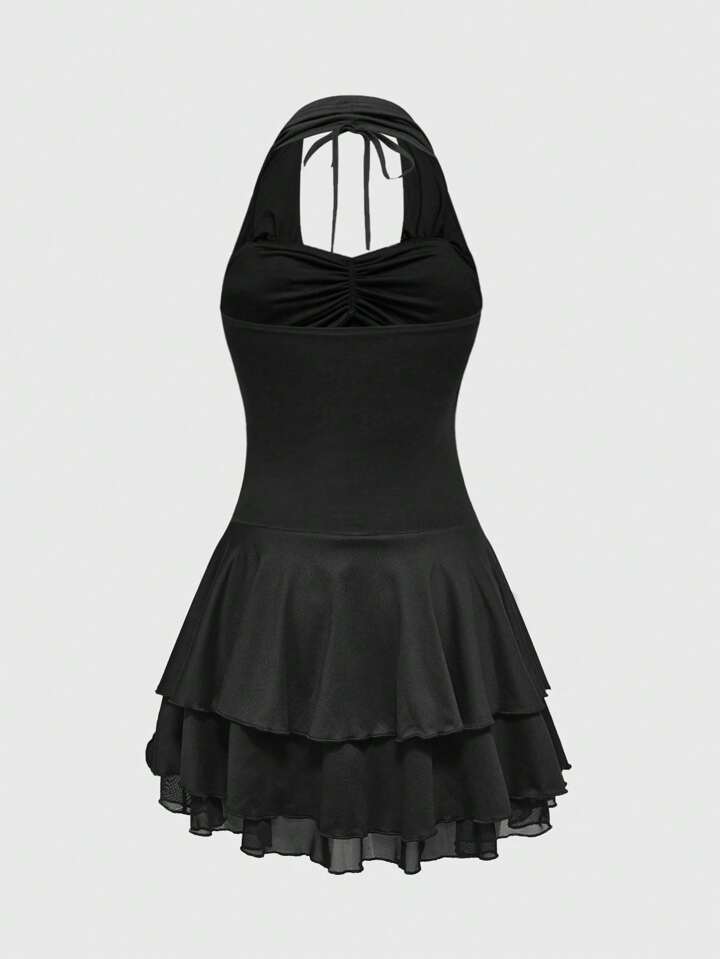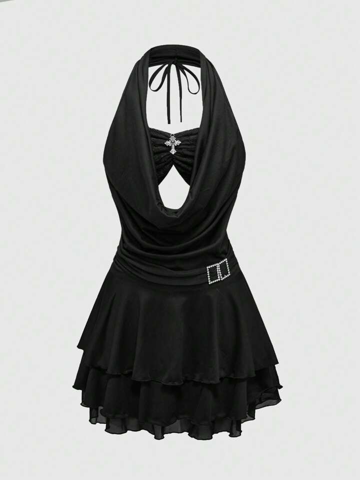 J-Fashion Y2K Vintage Pleated Waist Wide Draped Neck Sleeveless Women Mini Dress