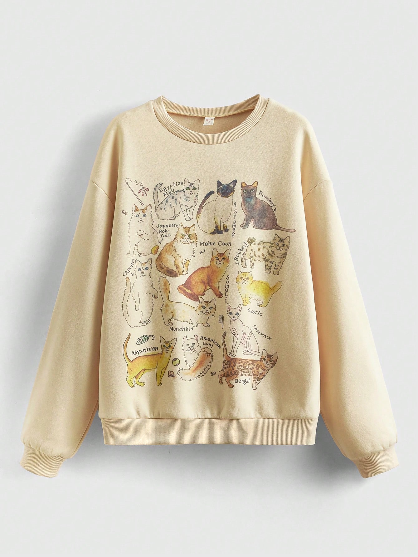 JOLLY by Jiajia Retro Cat Round Neck Fleece Sweatshirt
