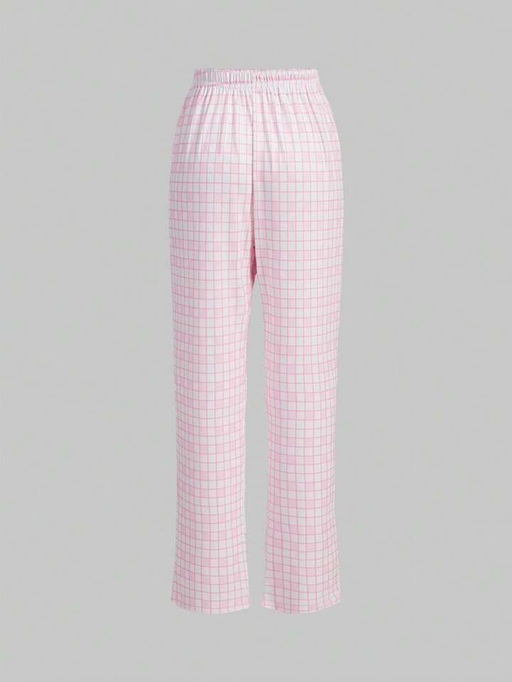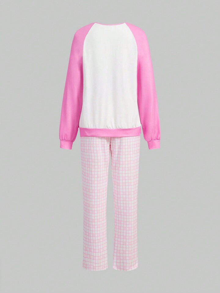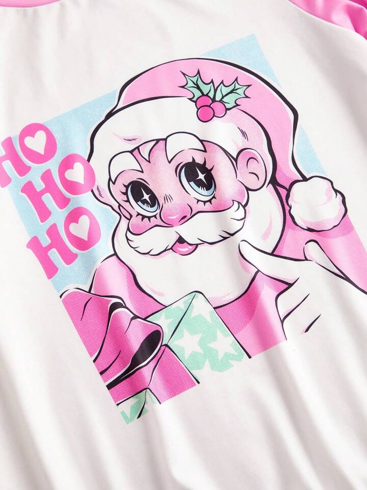 Karorine Women'S Pink Santa Claus Print Raglan Sleeve Plaid Pants Pajama Set