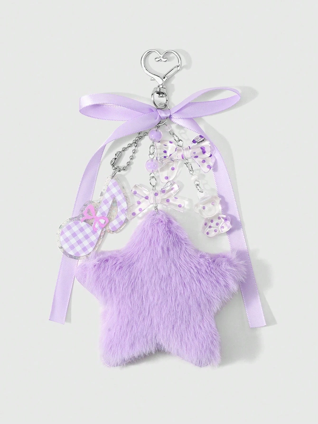 Kawaii 1 Ins Creative Cartoon Sweet And Cute Fashion Versatile College Wind Purple Series Resin Acrylic Rice Beads Round Beads Polka Dot Webbing Bow Bear Fine Glitter Sequins Sound Symbol Double-Sided Three-Dimensional Fluffy Fluffy Star DIY Love Keychain Bag Pendant, Suitable For Girls And Ladies Daily Wear, Holiday Gifts
