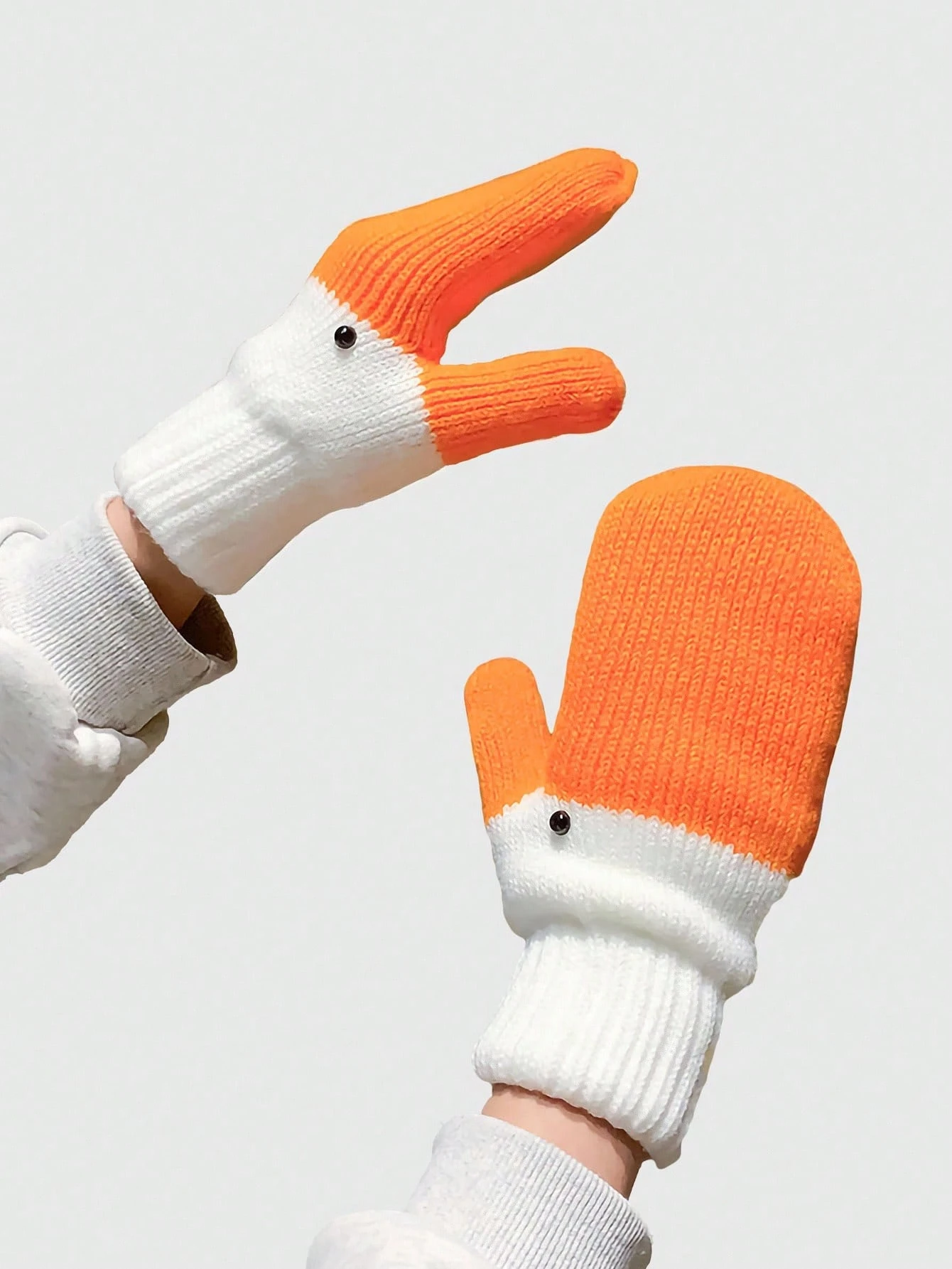 Kawaii 1 Pair Funny Goose Knitted Fingerless Gloves