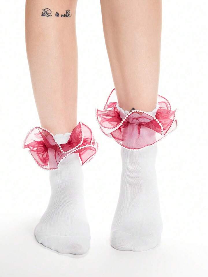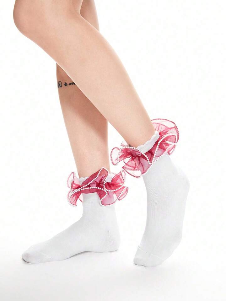 Kawaii 1 Pair Women Plain Color Decorated Reversible Mid-Calf Socks, Suitable For All Seasons