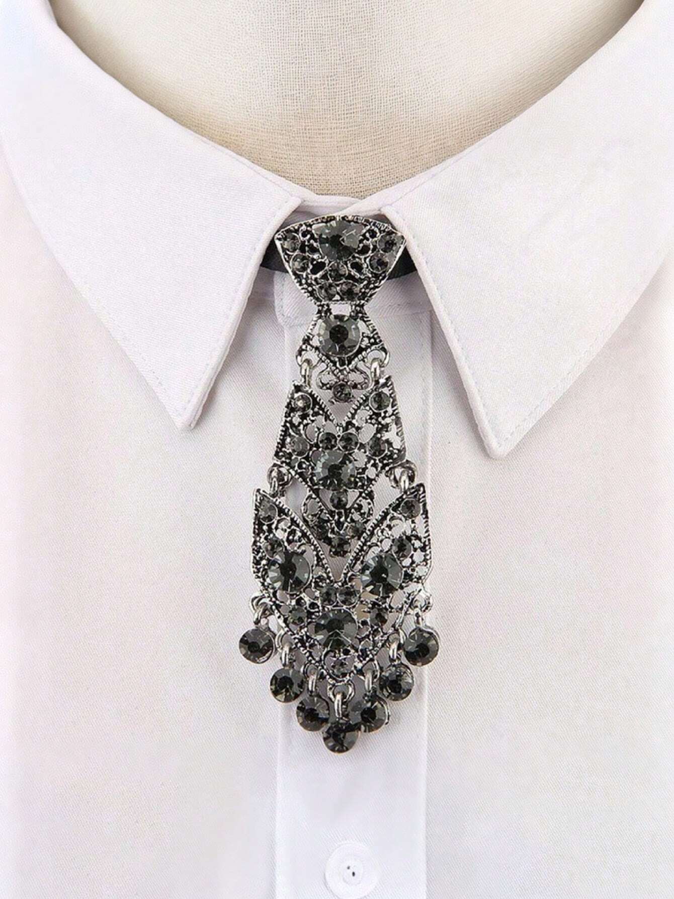Kawaii 1 Pc Diamond Metal Inlaid Diamond Small Tie, Elegant Women's Formal Tie, Fashion Personalized Crystal Neckties General Korean Wine Party Wedding Ceremony Metal Short Luxury Tie Men Accessories, Dainty, Fashionable, Unisex Design For Formal Events - Perfect Accessory For Wedding Hosting, Weddings, Festival Celebrations, Banquets & Formal Events, And More - Elegant Crystal Tie