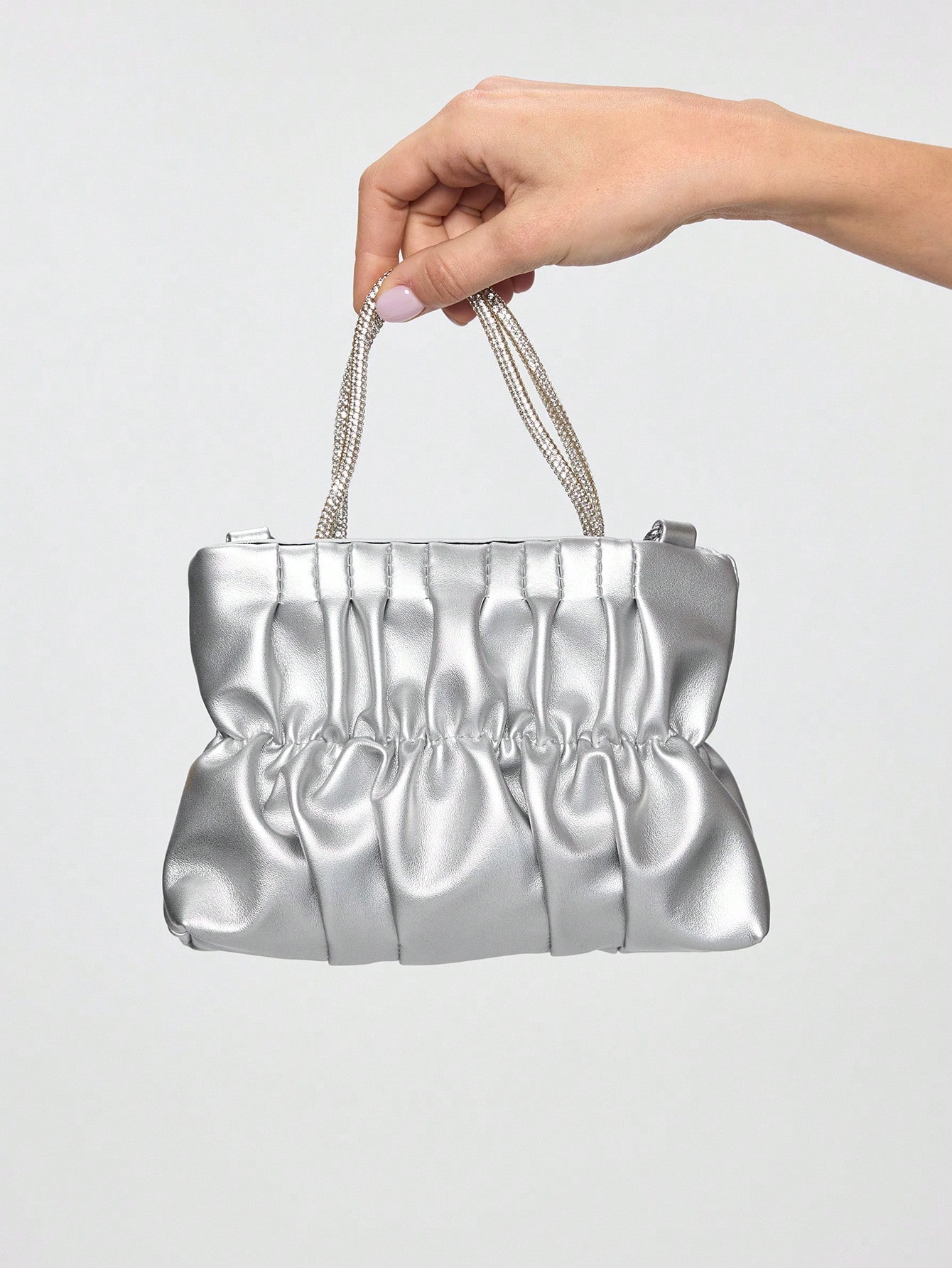 Kawaii 1 Piece Of Silver PU Pleated Stylish Simple New Versatile Tote Bag For Women's Daily Datesmatching,Perfect For Wedding Dress,Formal Dresses For Women,Prom Dress, Birthday Dress