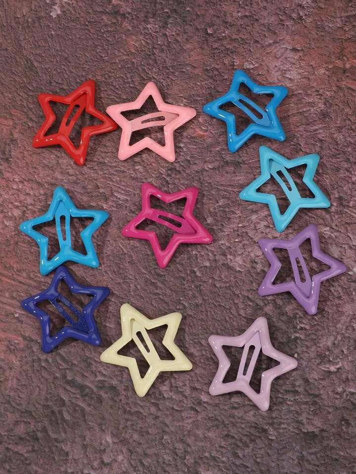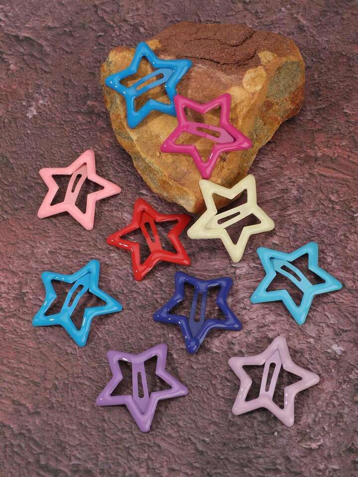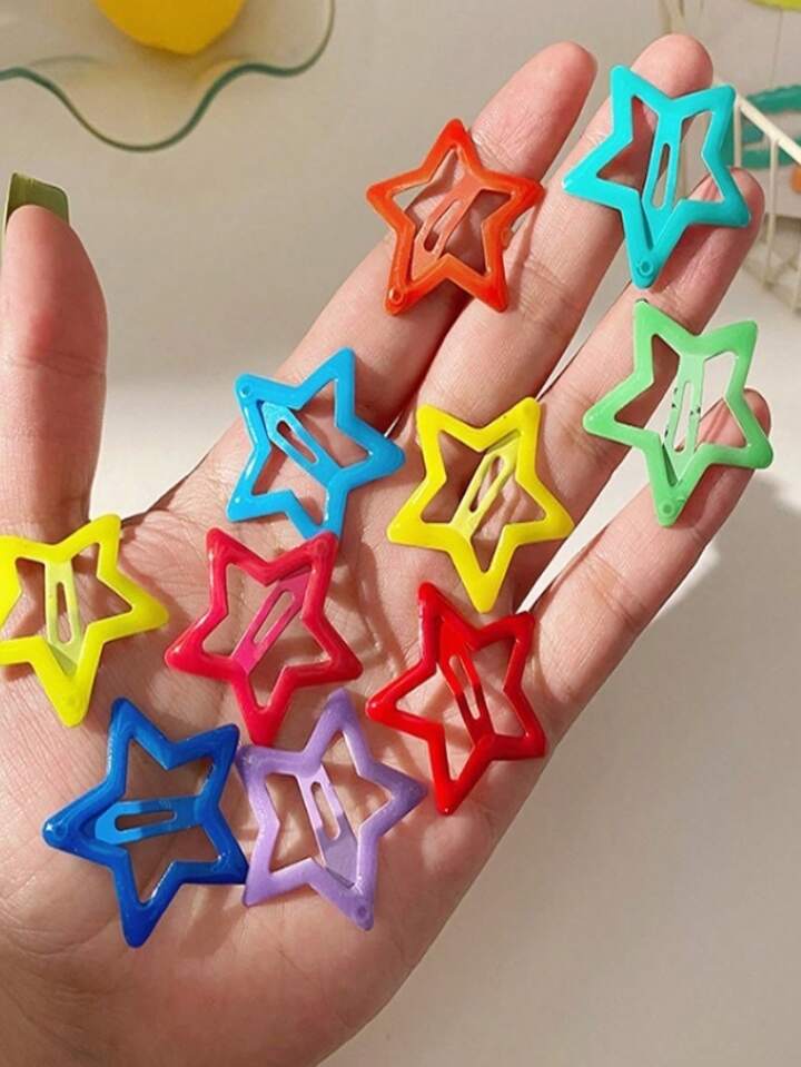 Kawaii 10pcs/Set Random Glittery Stars Hair Clips/Side Clips For Girls