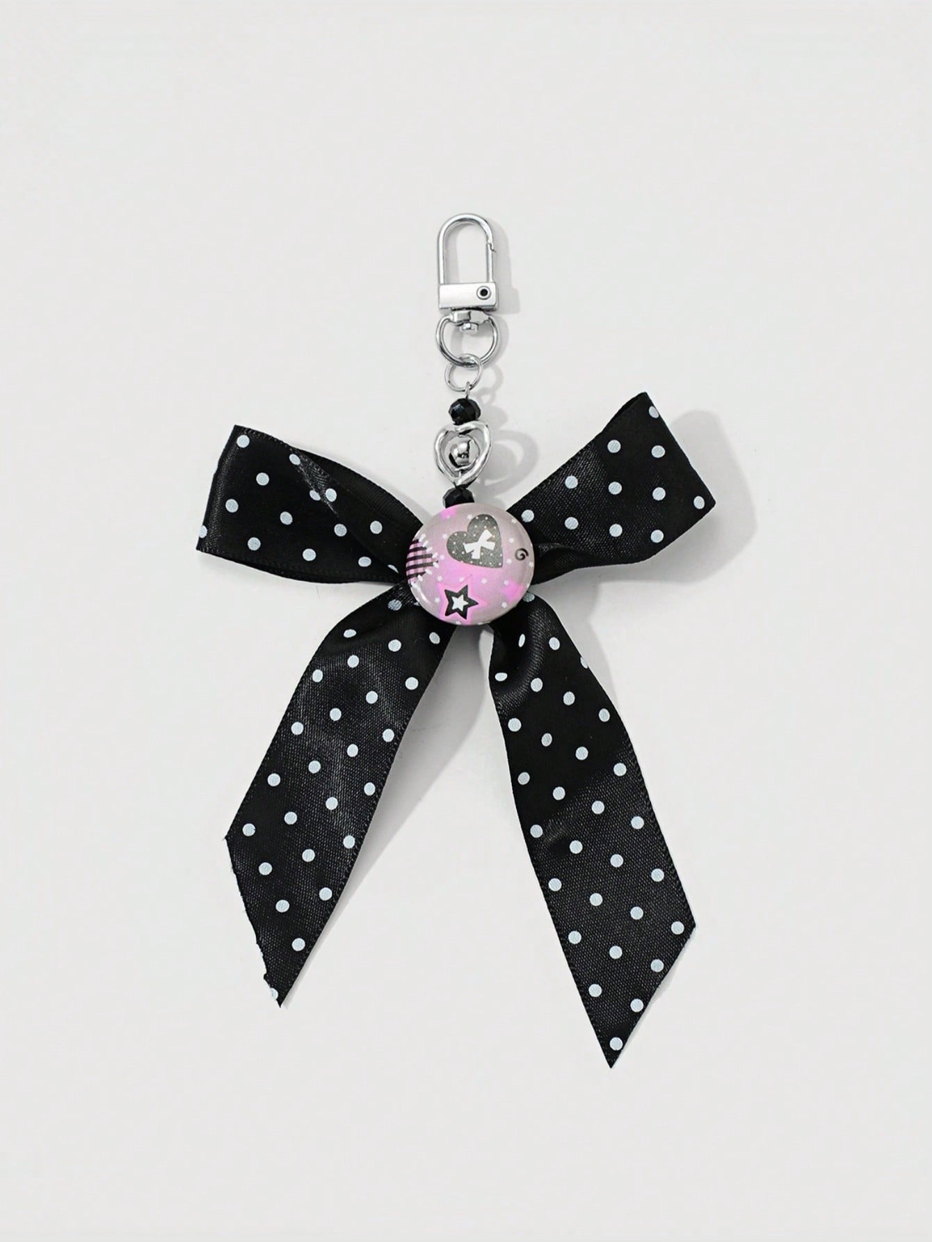Kawaii 1Pc Black And Pink Y2k Millennial Babes Retro Polka Dot Bow Shape With Detachable Bar Badge Decorative Design Multi-Functional Accessory Ring, Keychain, Bag Pendant Ring, Suitable For Daily, College, Shopping, Dating, Etc