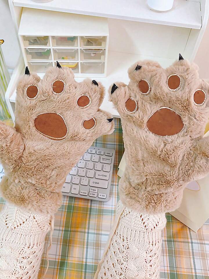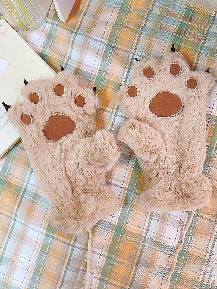 Kawaii 1pair Bear Paw Plush Mittens Gloves