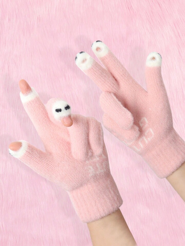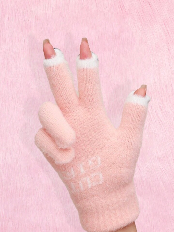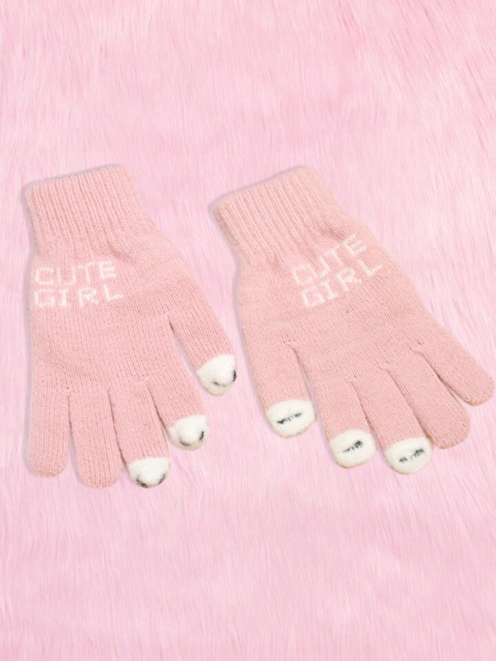 Kawaii 1pair Cute Pink Fingerless Gloves For Women, Warm And Cold Protection