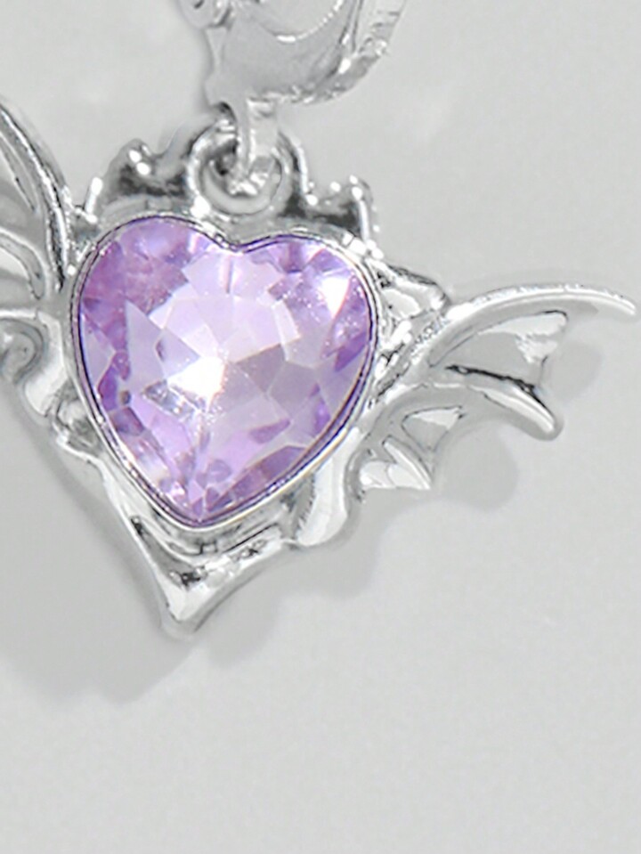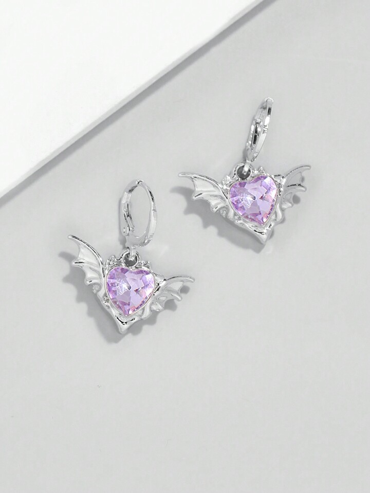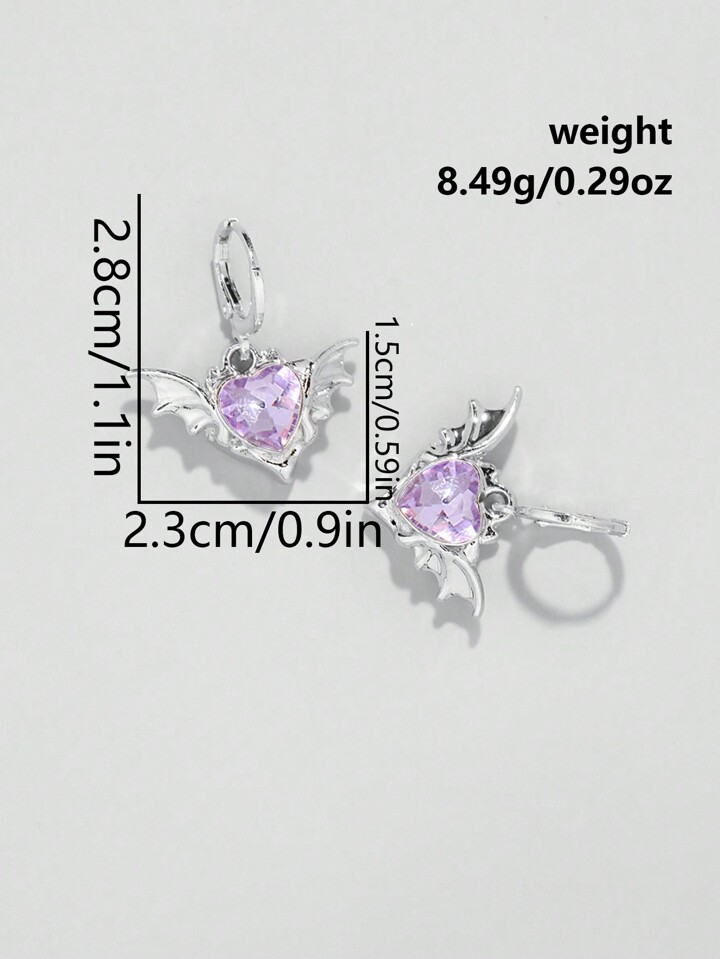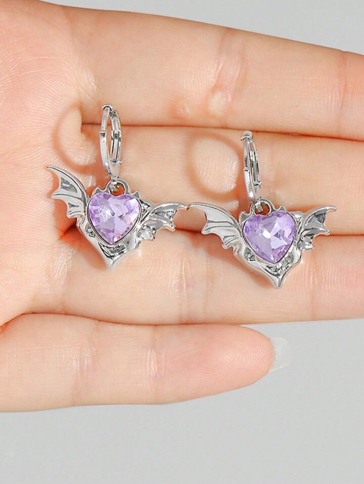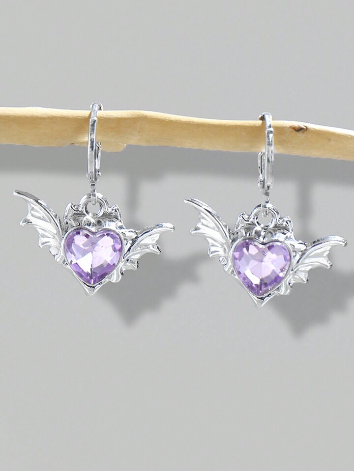 Kawaii 1pair European And American Gothic Style Valentine's Purple Devil Wings Heart Pendant Earrings Valentines,Mom,Mother,Mother's Day,Gift
