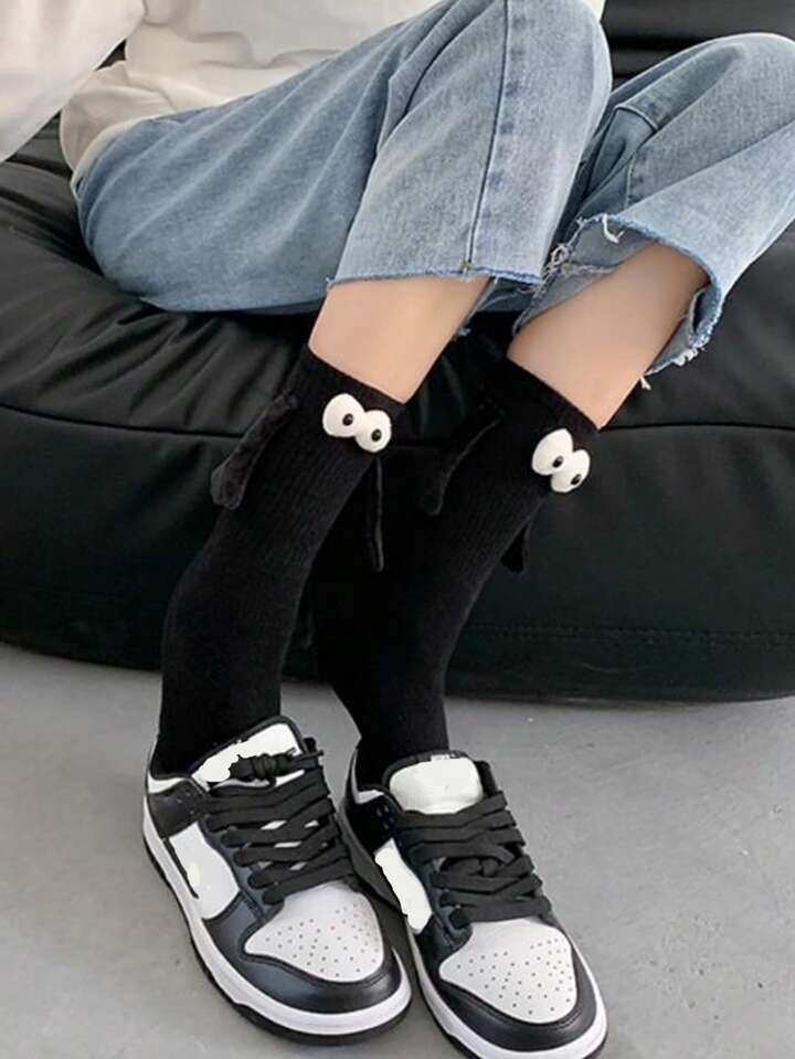Kawaii 1pair Women Eye Decor Magnetic Crew Socks
