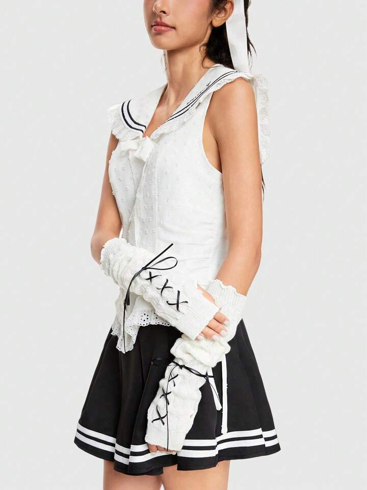 Kawaii 1pair Y2K Millennium Girl Bandage Sleeves, Japanese Cute JK Lolita Puff Sleeve Covers