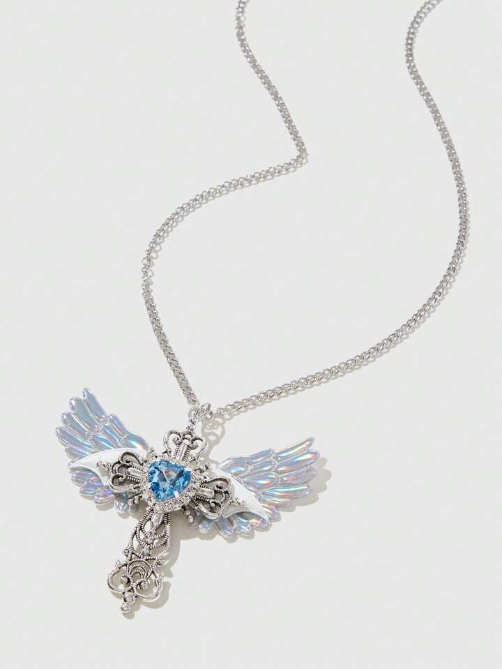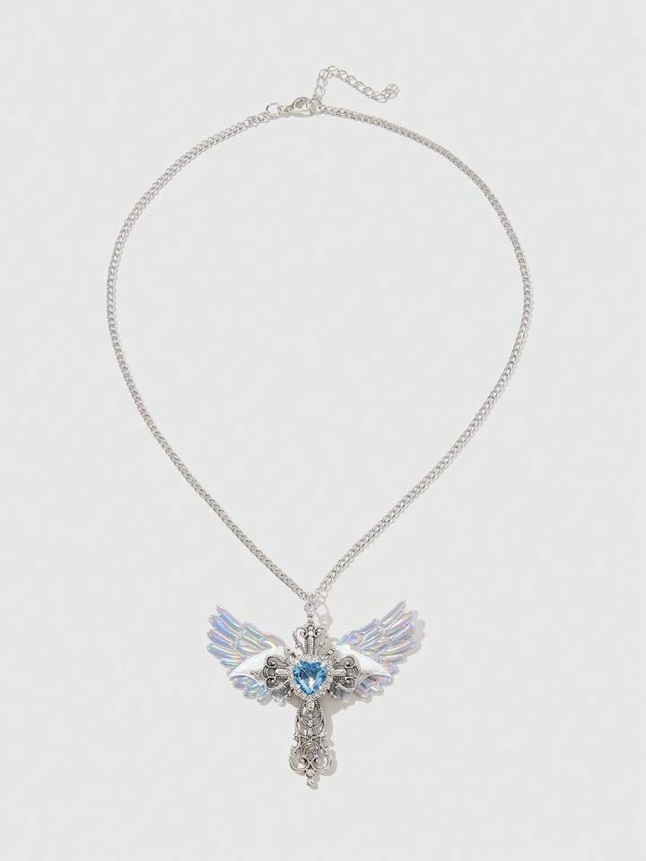 Kawaii 1pc Angel Wings & Cross Pendant Necklace
