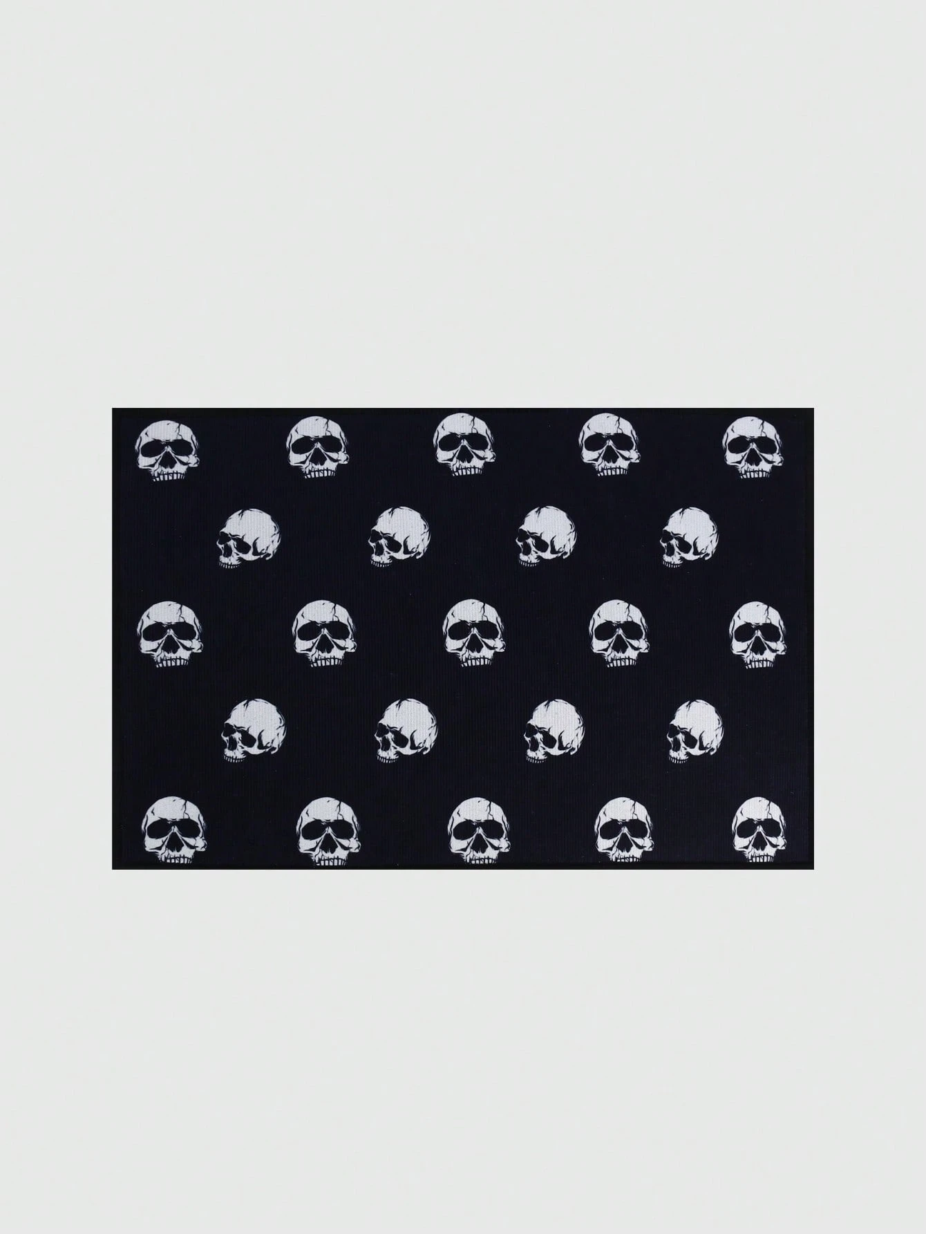 Kawaii 1pc Black Skull Full Print Rug With Black Border, Suitable For Bedroom, Bathroom, Living Room, Kitchen