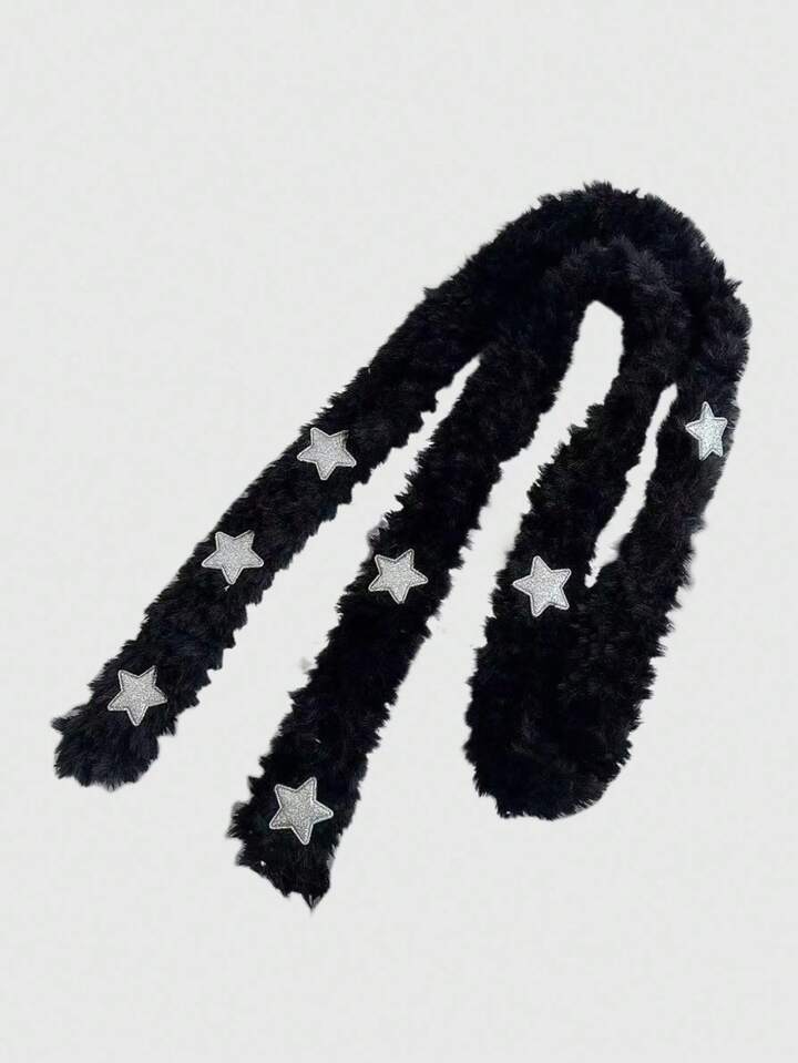 Kawaii 1pc Black Y2K Punk Star Decor Women's Scarf, Subculture Warm Accessory, Suitable For Daily Matching, College, Streetwear, Commuting