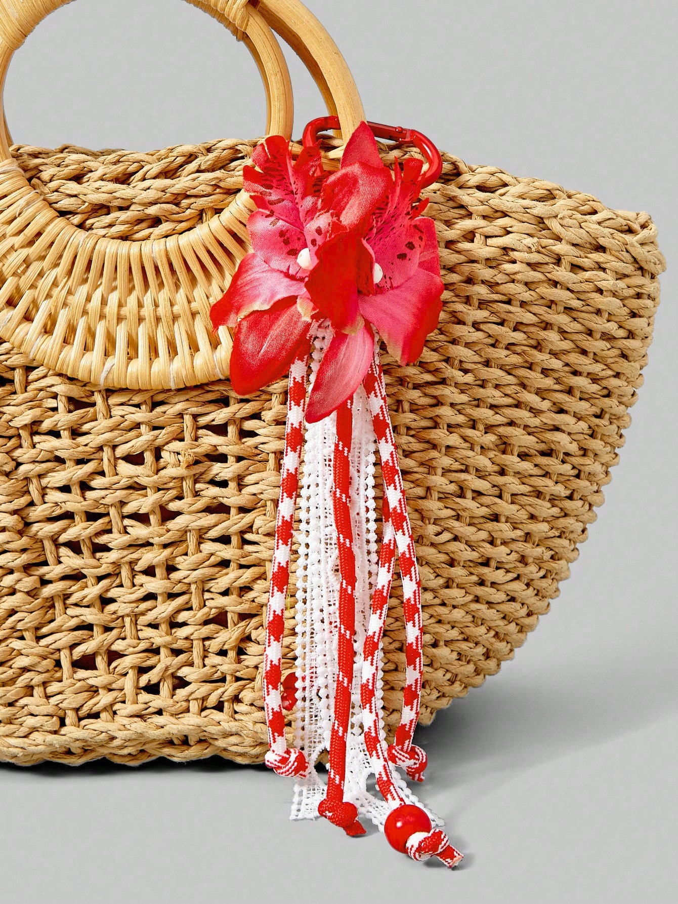 Kawaii 1pc Boho Tropical Flower Print Beach Bag, Orchid Charm Keychain For Holiday