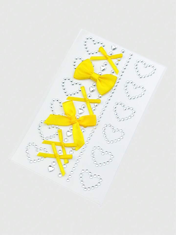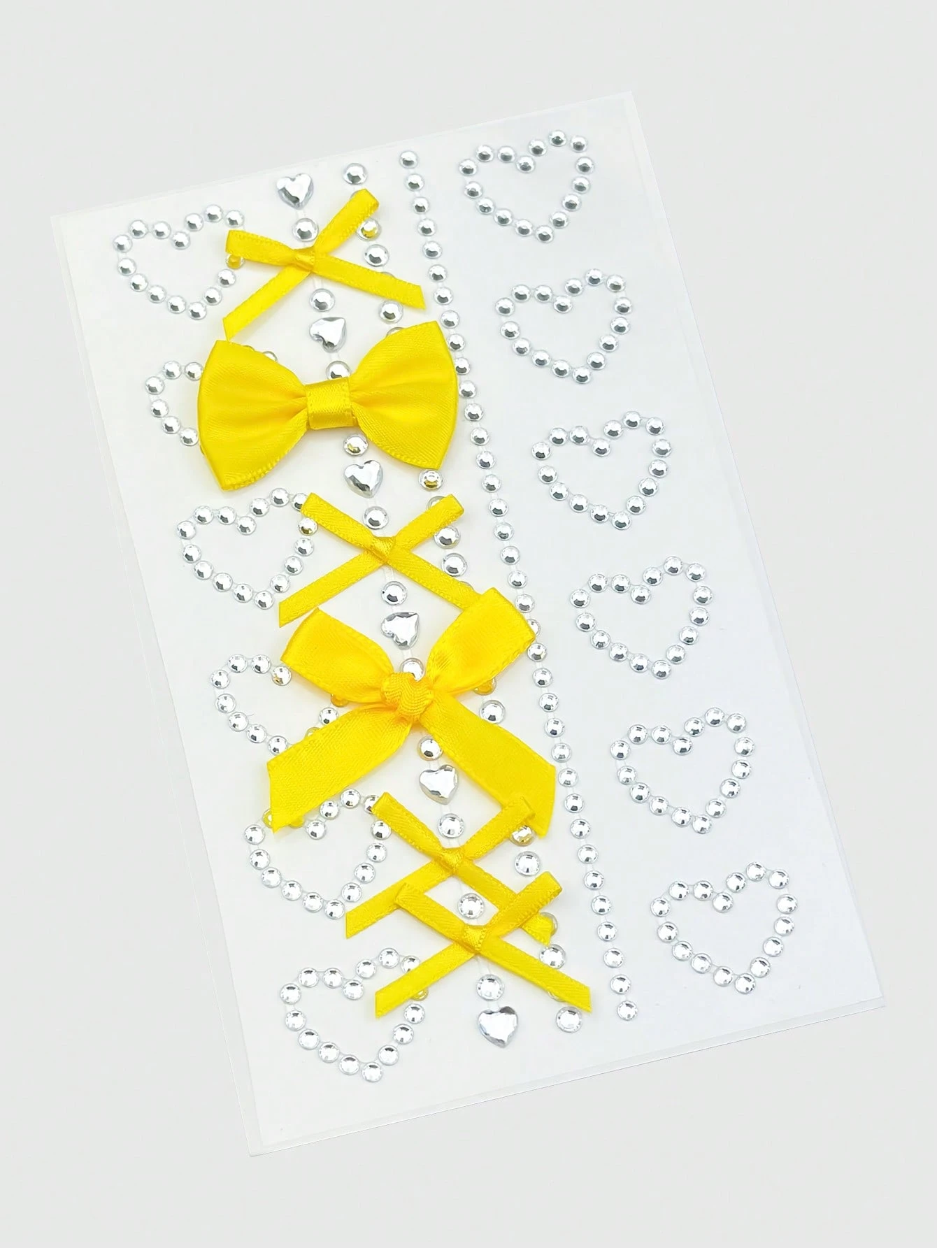 Kawaii 1pc Bow & Heart Shaped Face Gems Stickers
