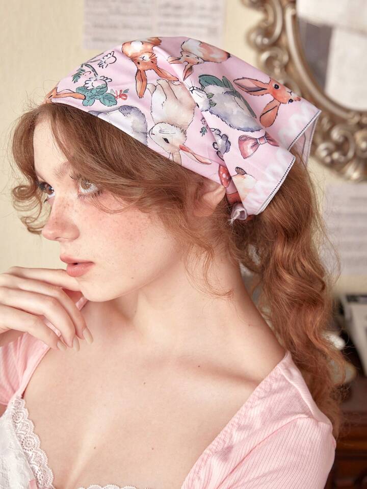 Kawaii 1pc Cartoon Rabbit & Leaf Print Scarf Cute