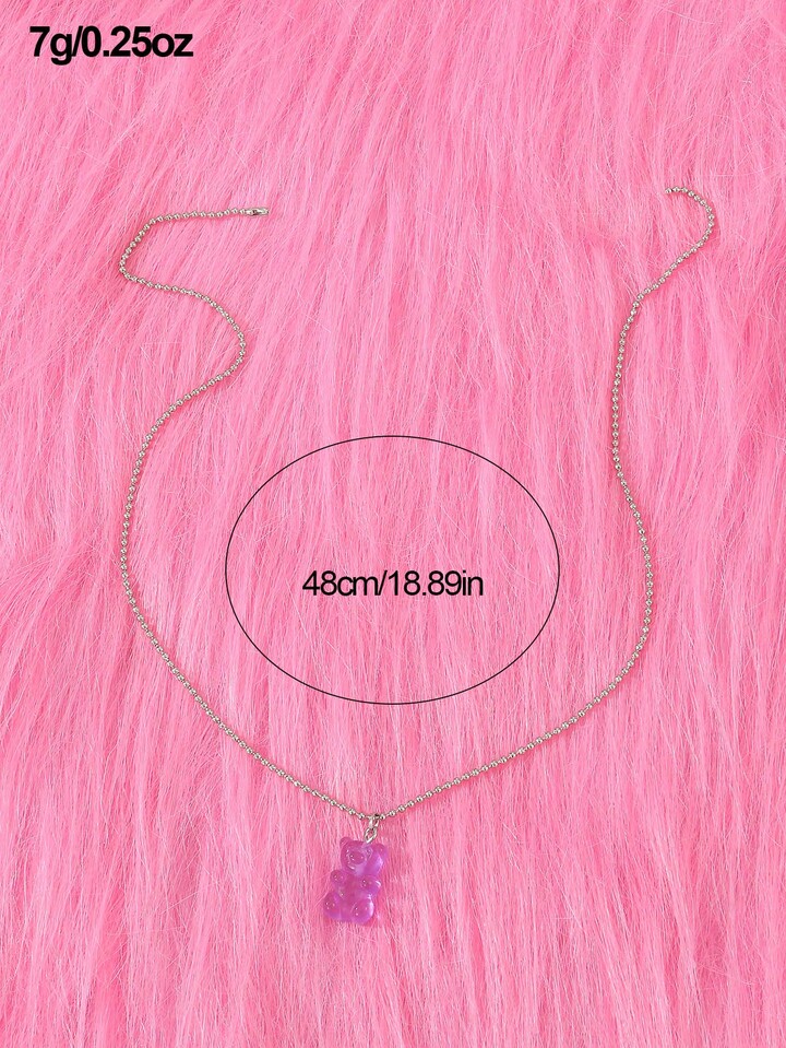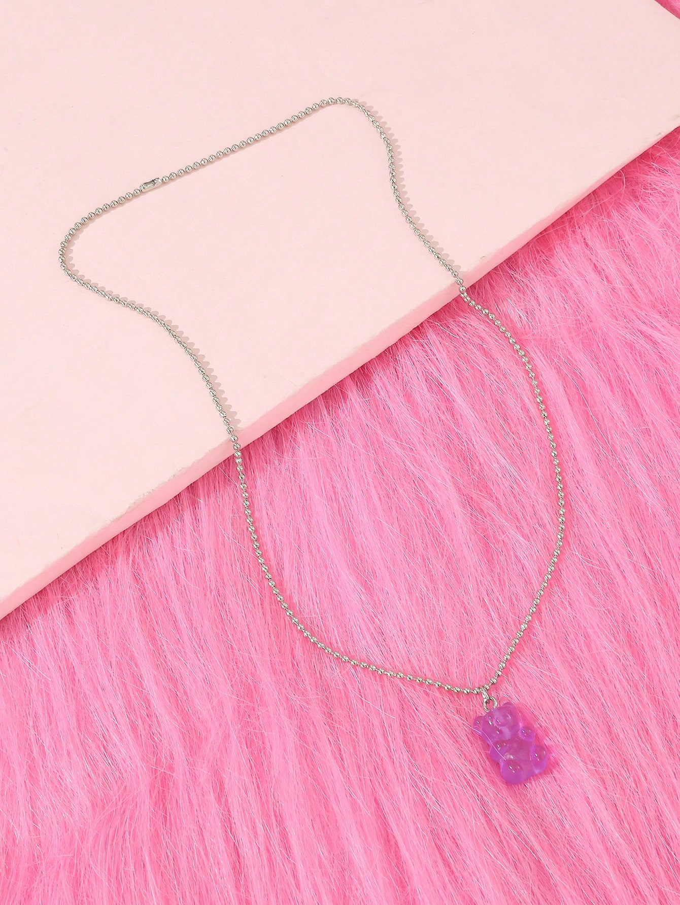 Kawaii 1pc Cartoon Resin Bear Pendant Necklace